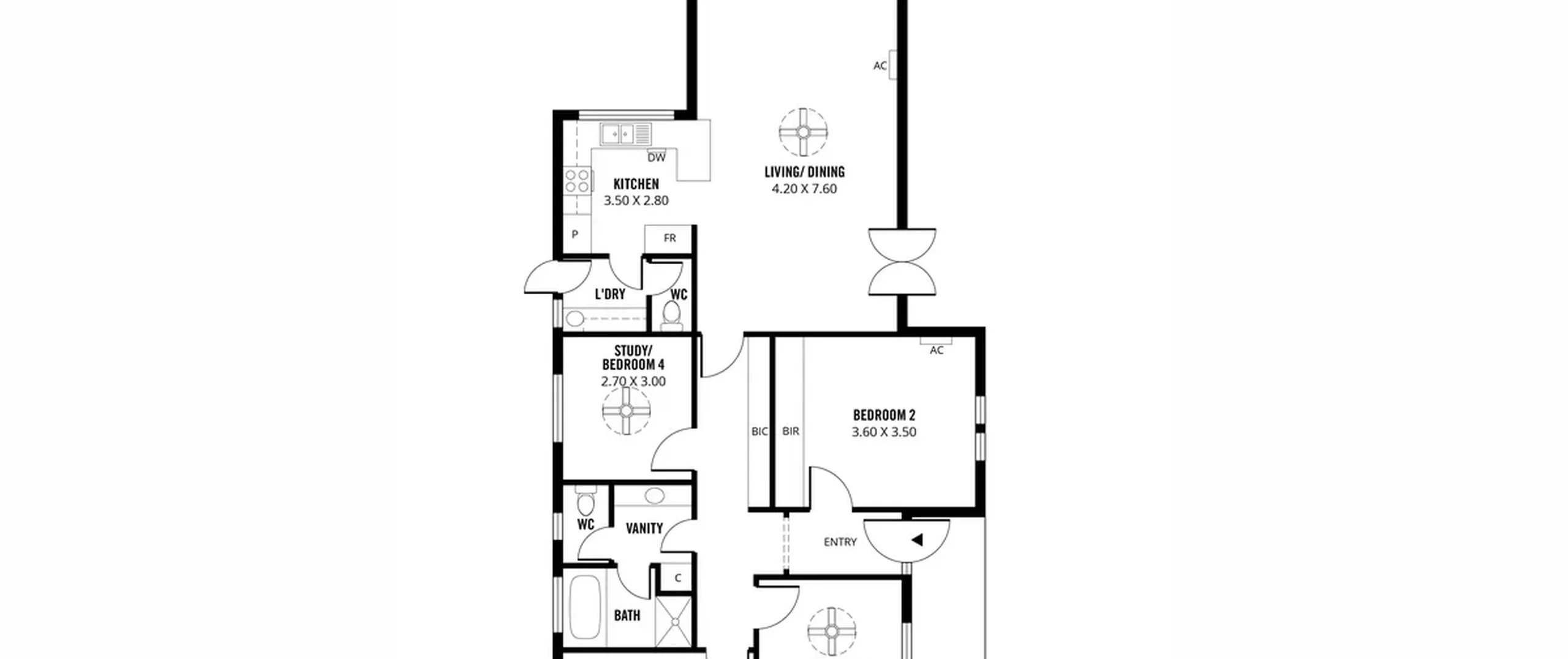- Flexible layout with four bedrooms, or three plus study