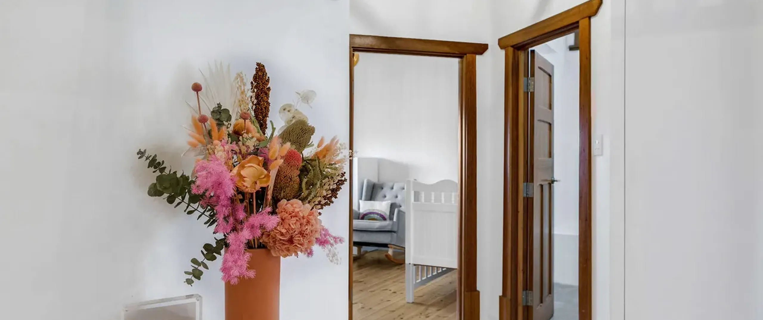 - Wide entrance hallway with Crimsafe security doors