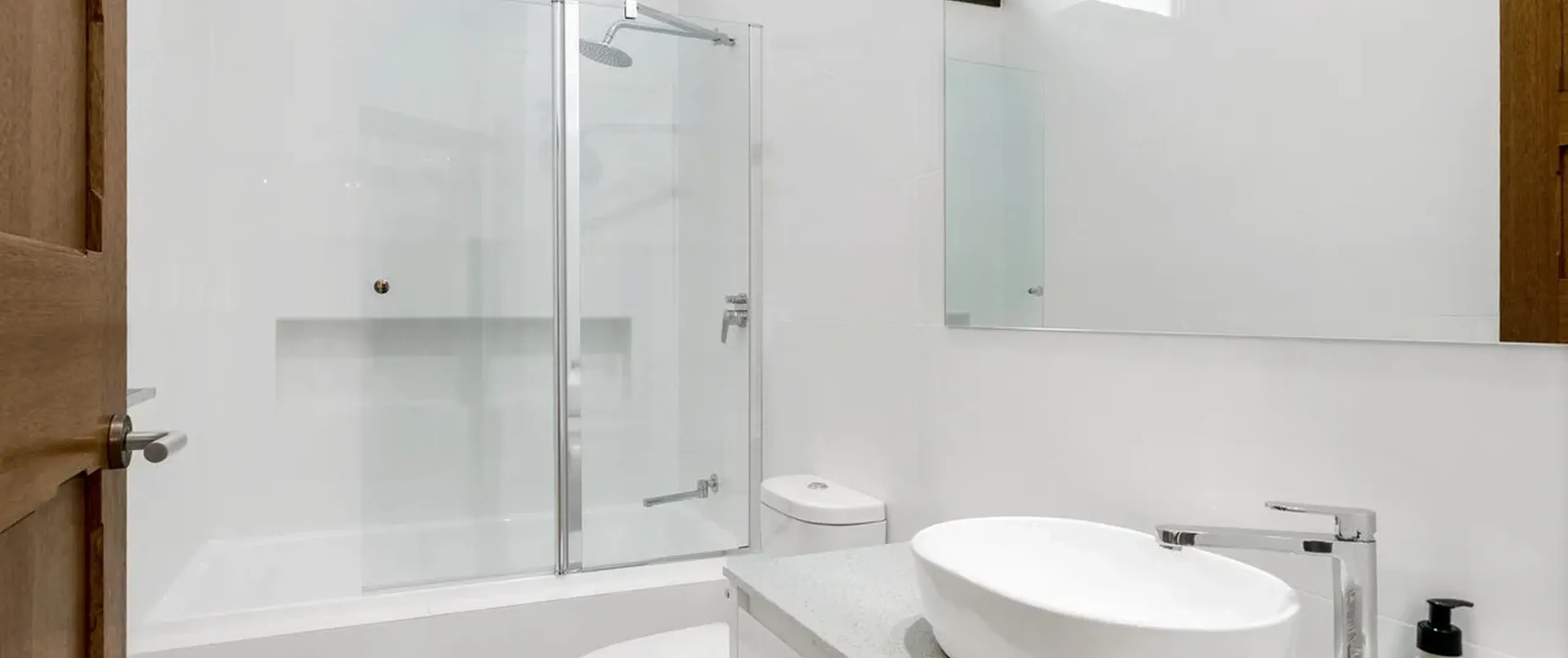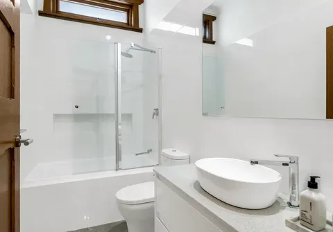 - Contemporary main bathroom with shower over bath and 2nd toilet