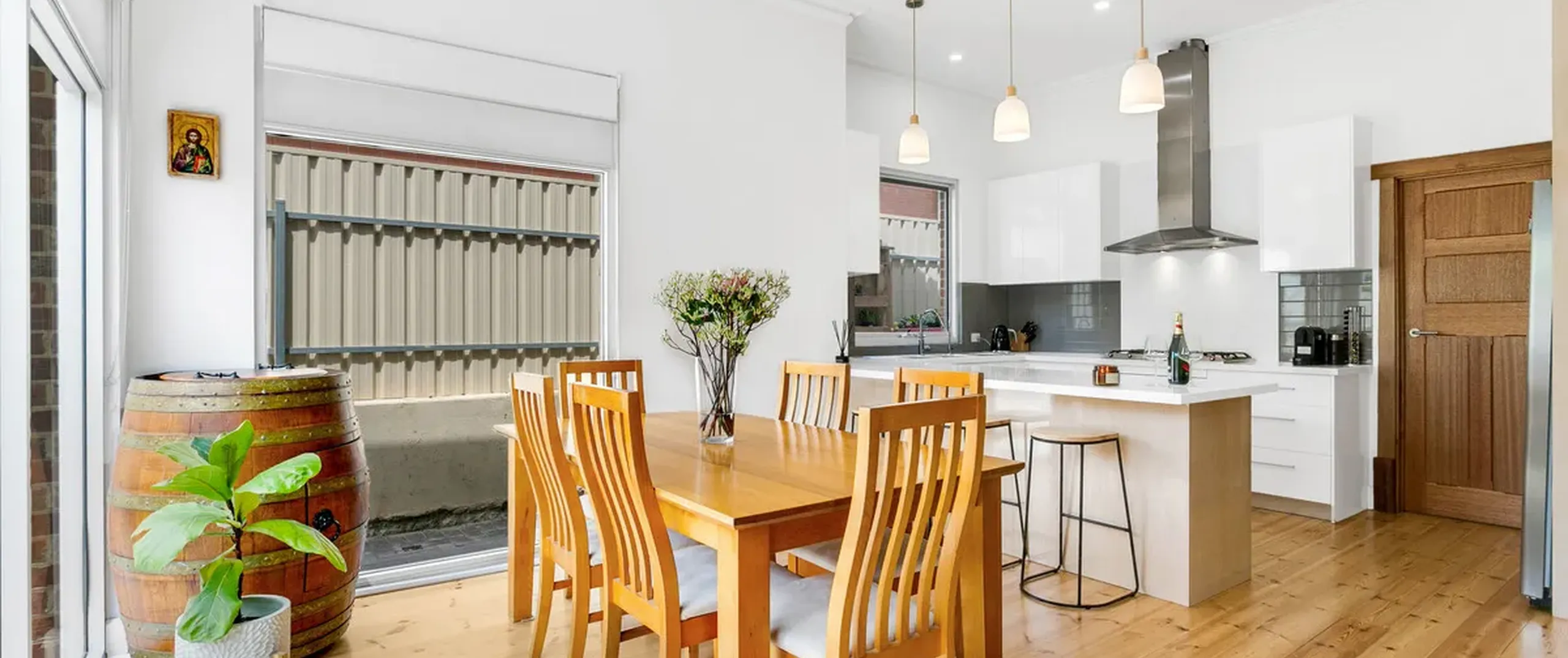 - Beautiful character features with polished pine floorboards, brand new character cornicing, architraves, solid timber doors, traditional skirting, and soaring 3m ceilings throughout combining the old with the seamless modern extension