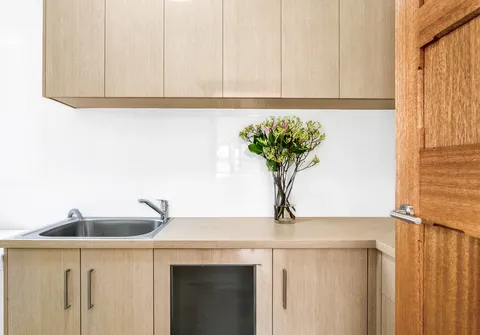 - Large laundry or combined butlers pantry with built-in joinery, bench space and external access to backyard
