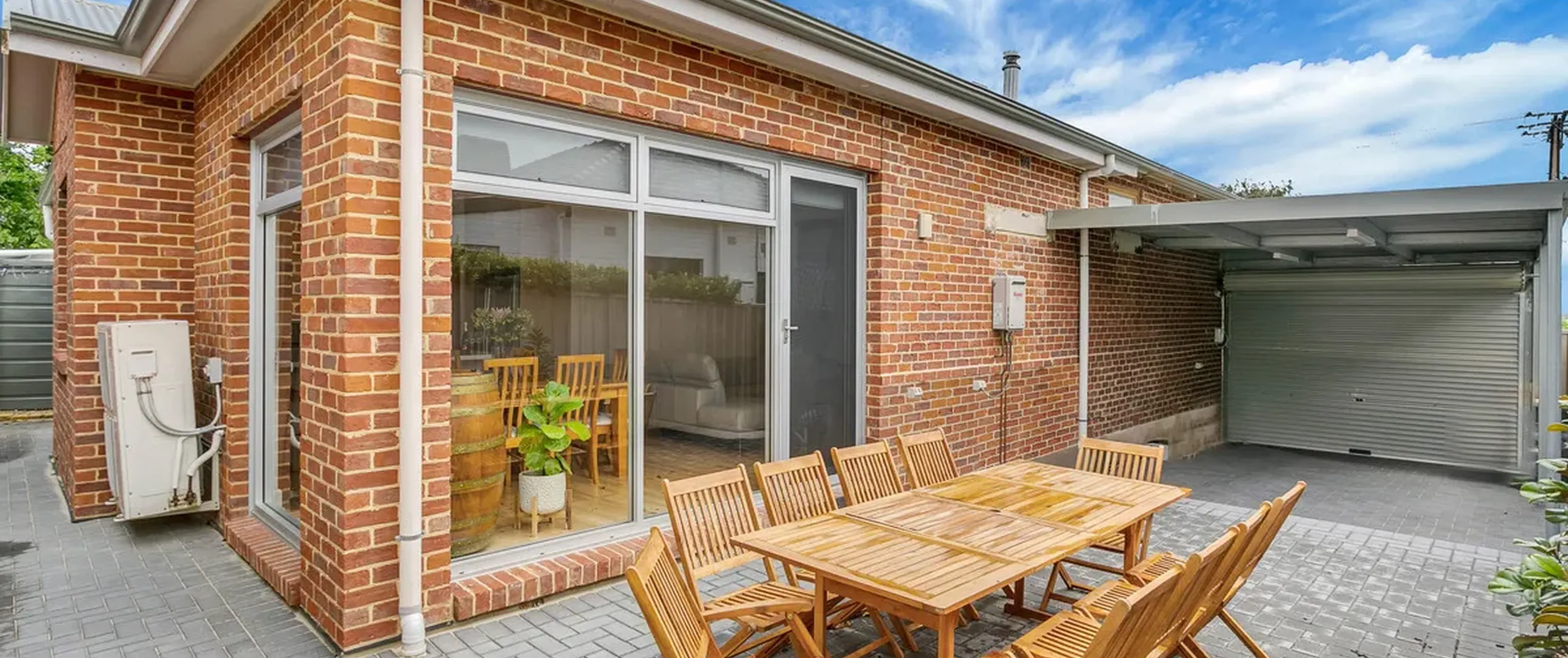 - Secure single carport with automatic roller door which can also be used for undercover outdoor entertaining