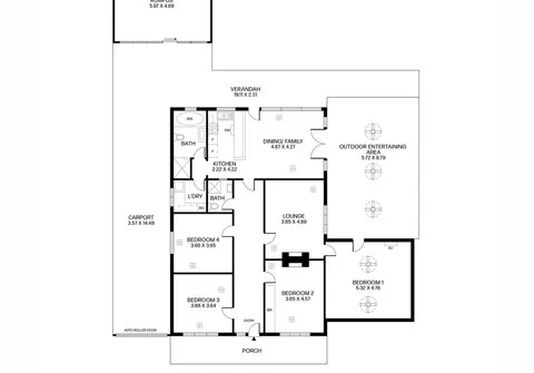 - Secure expansive carport with automatic roller door and capacity to store 4 cars or 3 cars and a caravan