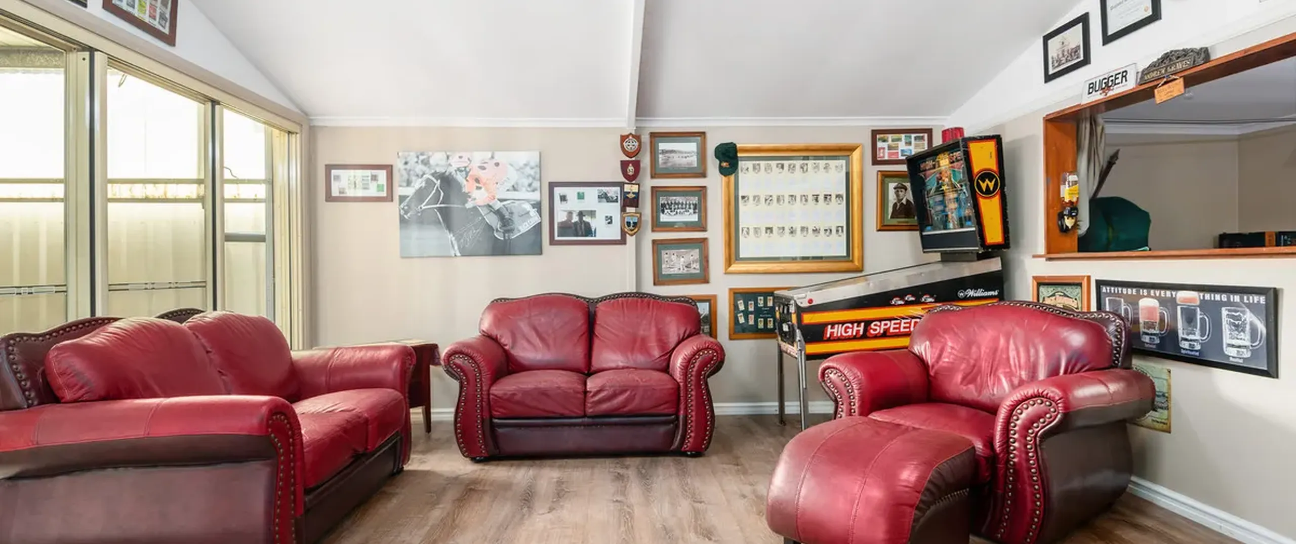 - Fully lined, light filled rumpus room featuring a bar setup with ample storage