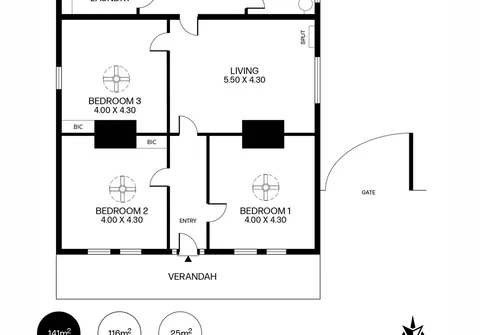 - 3 well-sized bedrooms all with ceiling fans, bedroom 2 and 3 with built-in cupboards