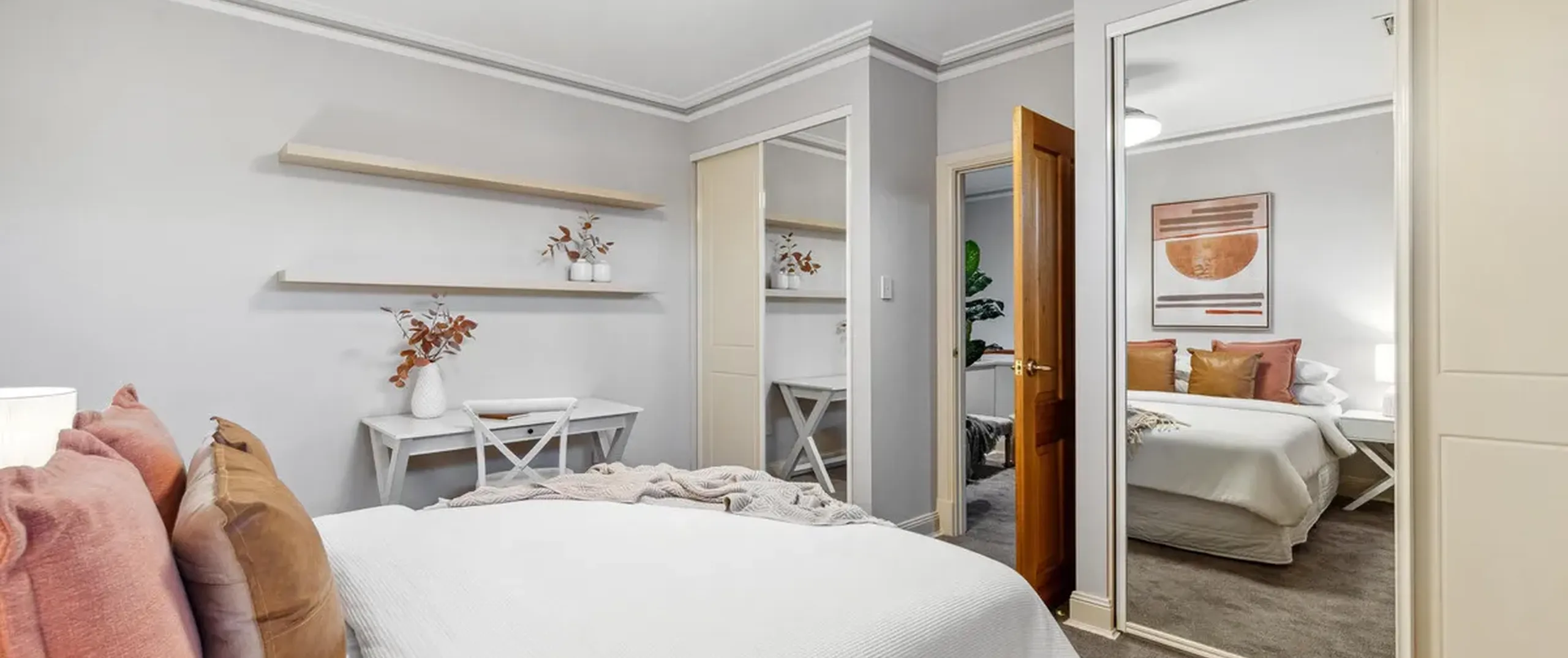 - Spacious guest bedroom with ceiling fan and built-in robe