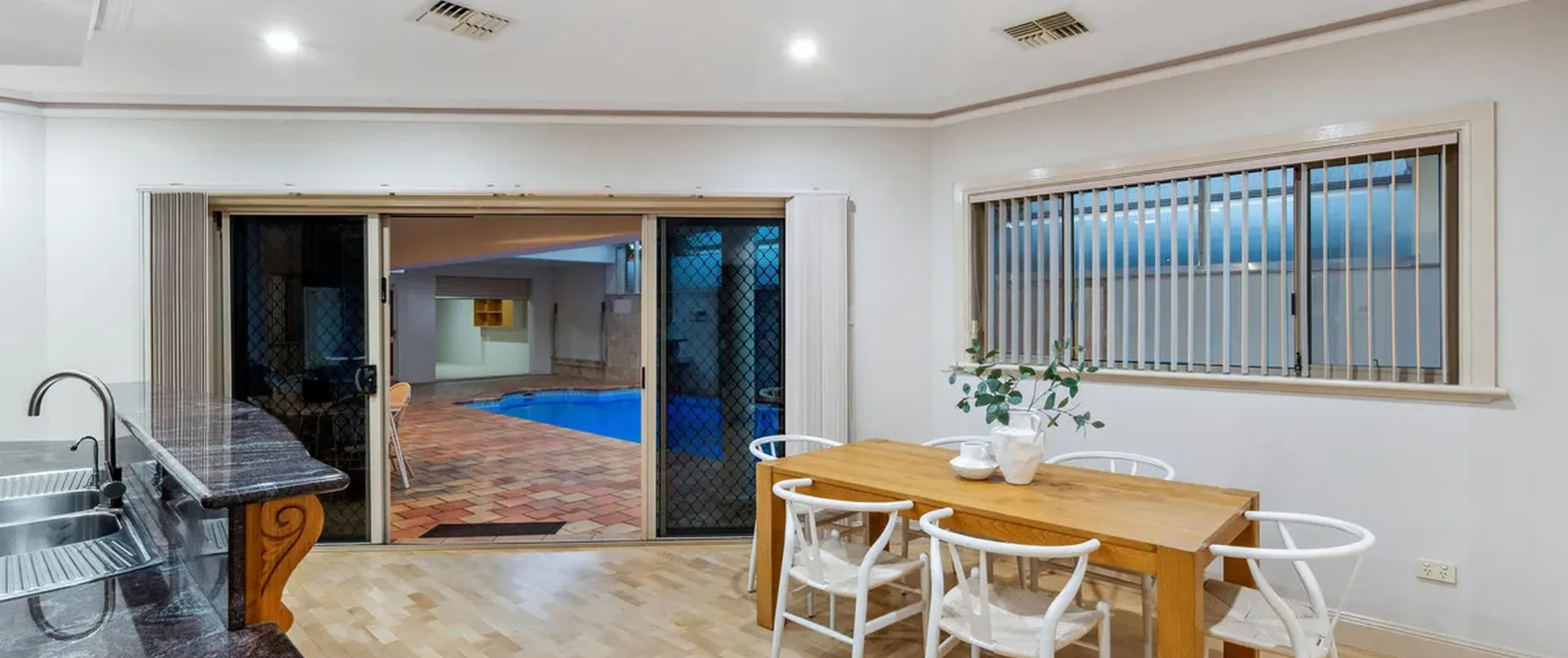 - Meals area adjacent to the kitchen