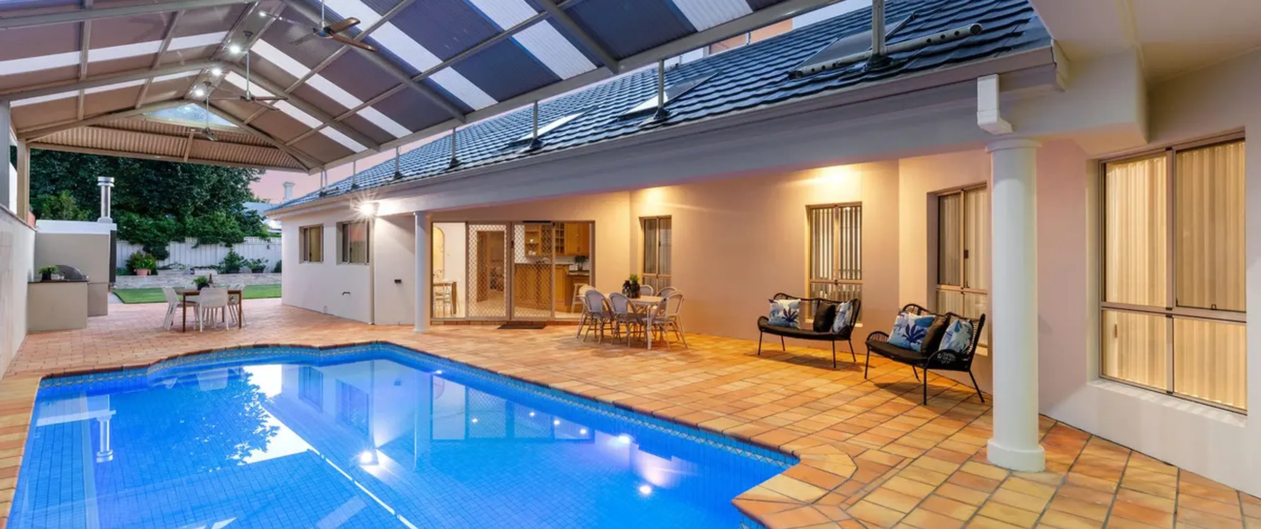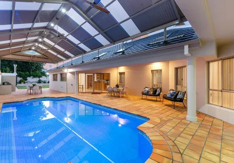 - Generous sparkling in-ground swimming pool located under the pitched roof verandah with ceiling fans