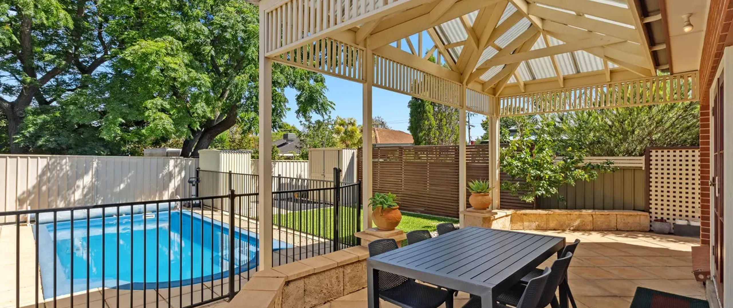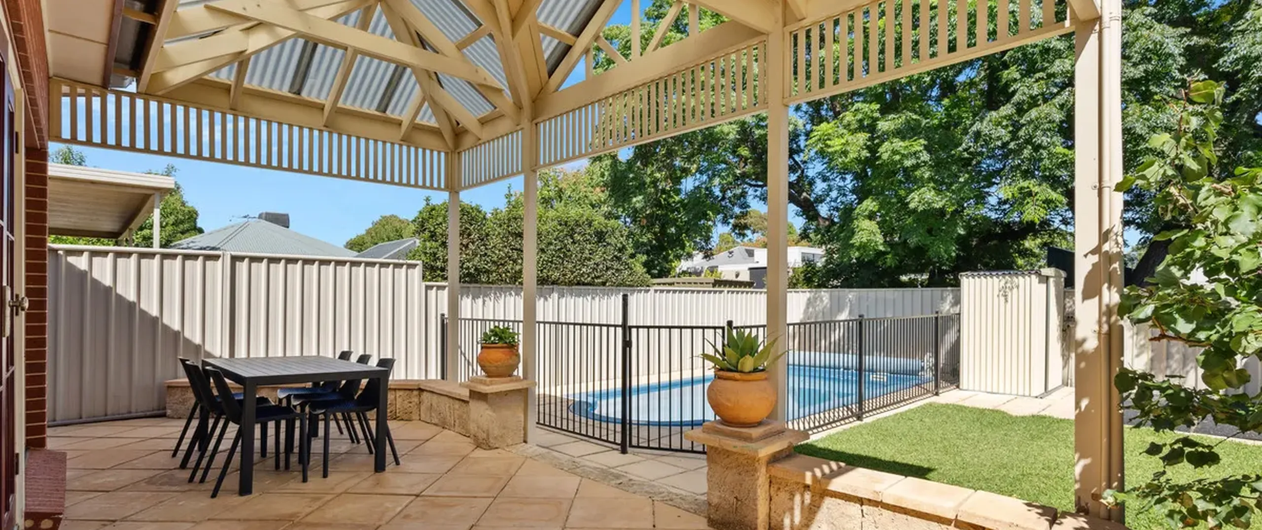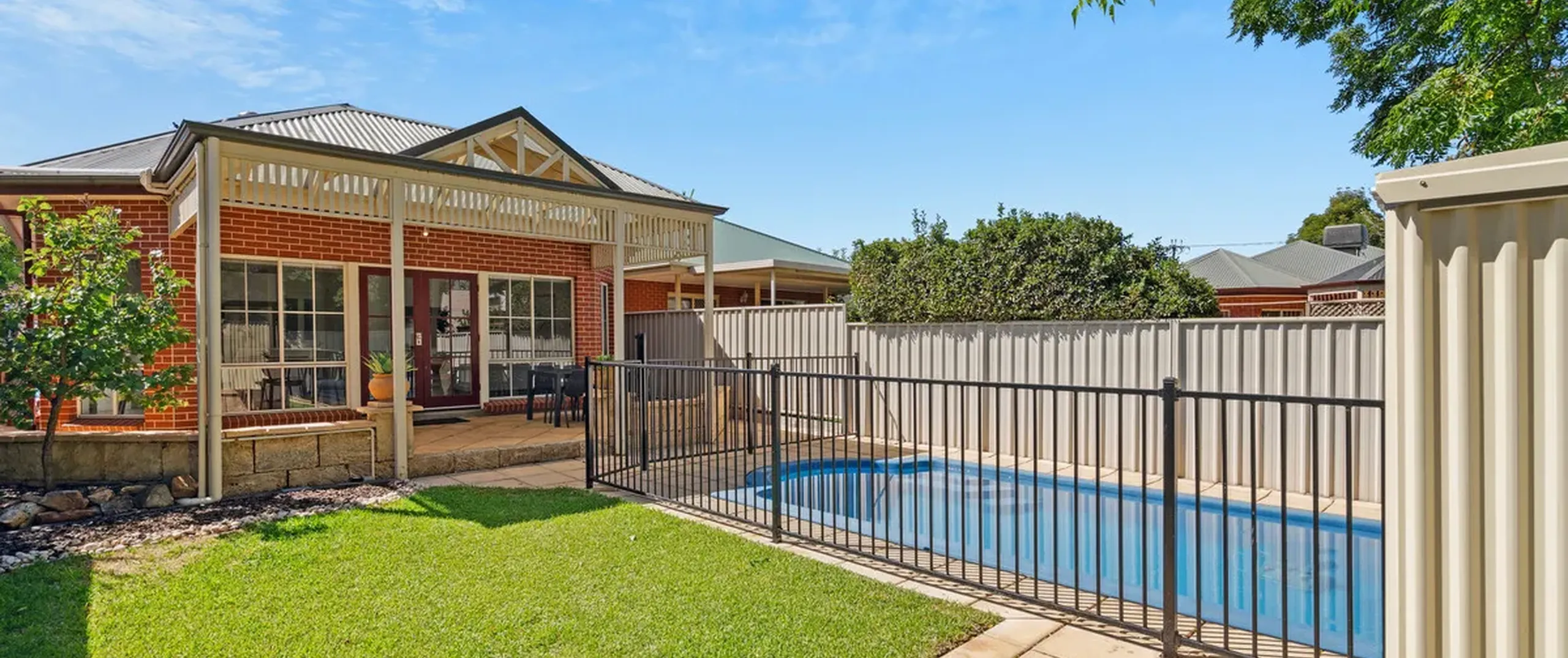 - Fully fenced backyard with grass area, perfect for kids and pets to enjoy