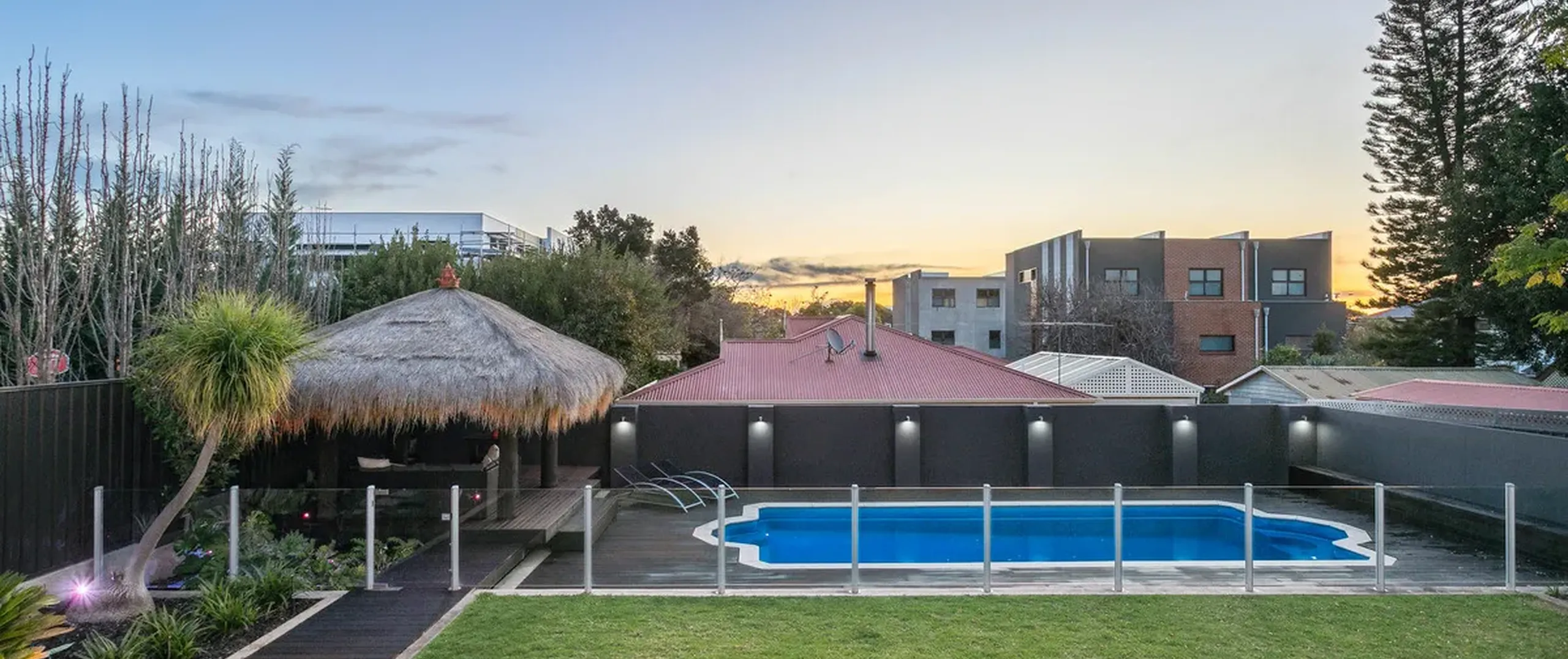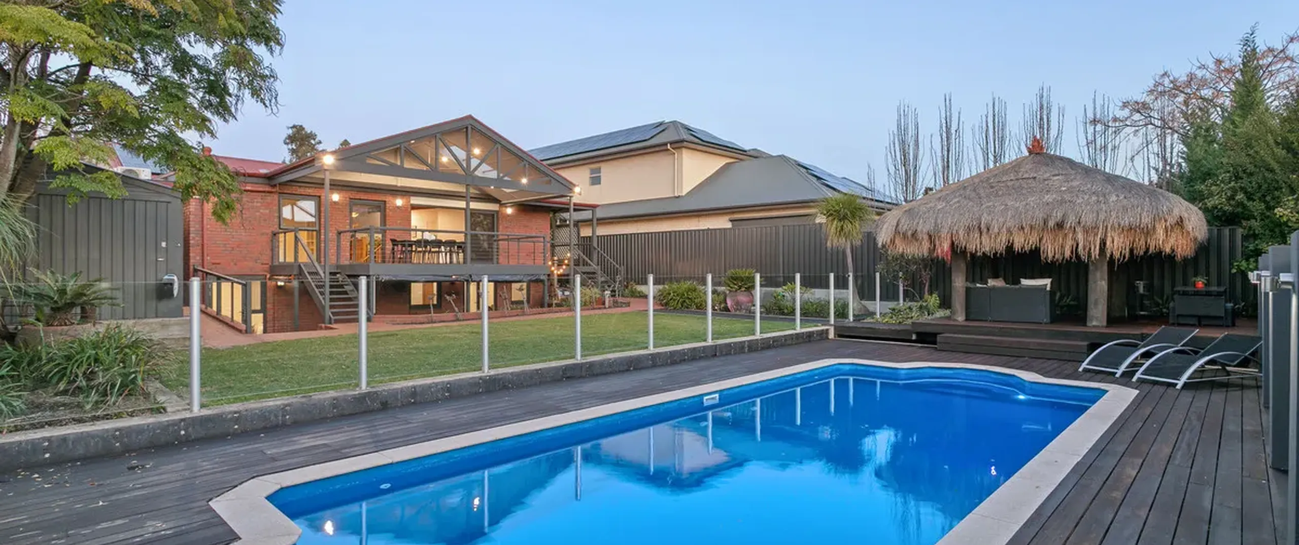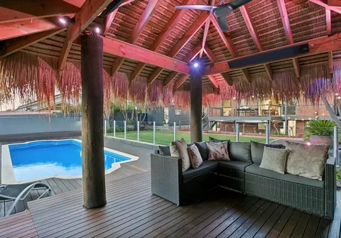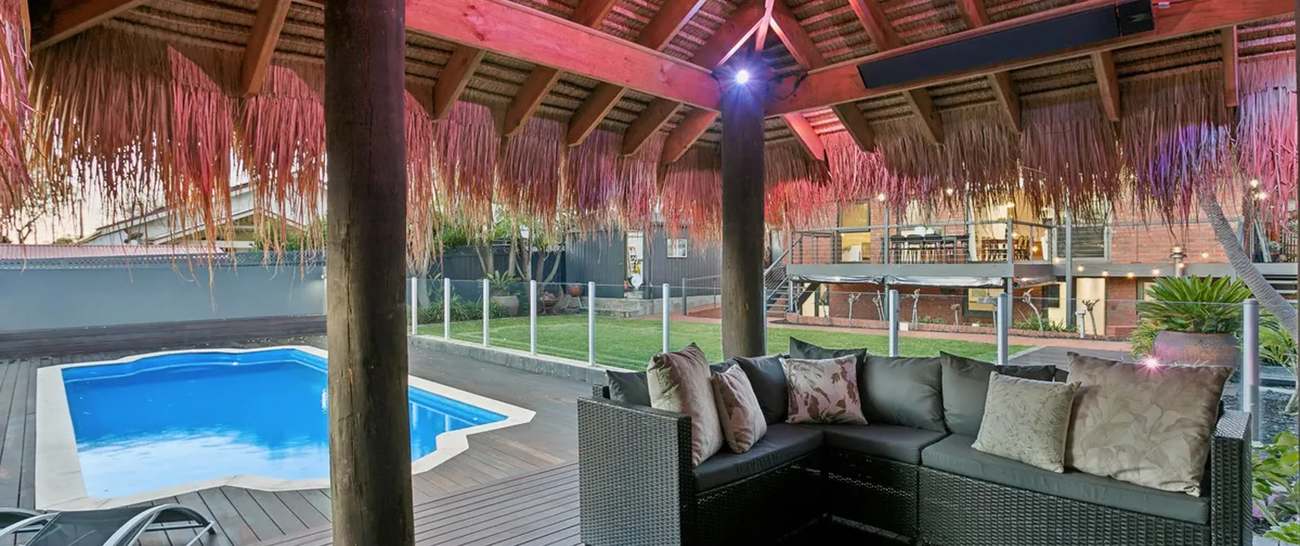- The sparkling inground salt chlorinated fibreglass pool with solar heating will keep your family entertained for hours as you relax under the stunning decked Bali hut complete with heat strips, Sonos audio system, aqua fan and Holman lighting