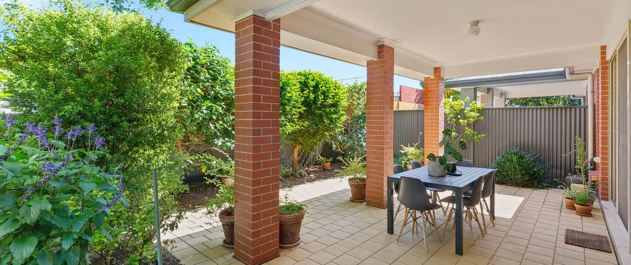 - Outdoor alfresco entertaining area with pavers, providing a perfect spot for dinner on summer nights