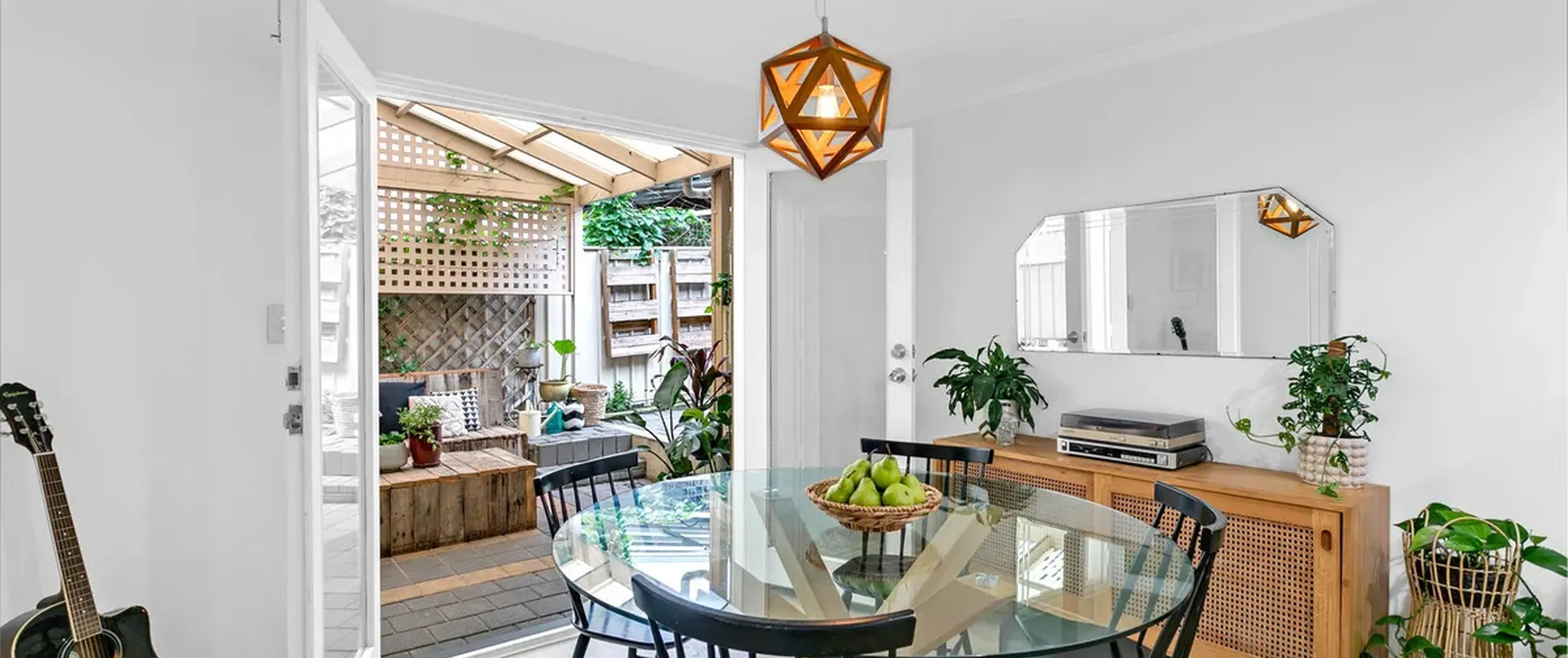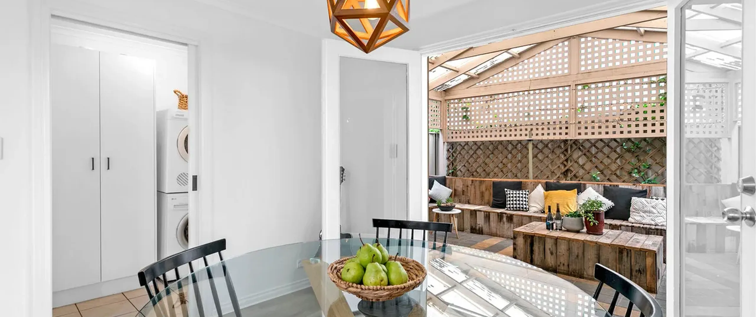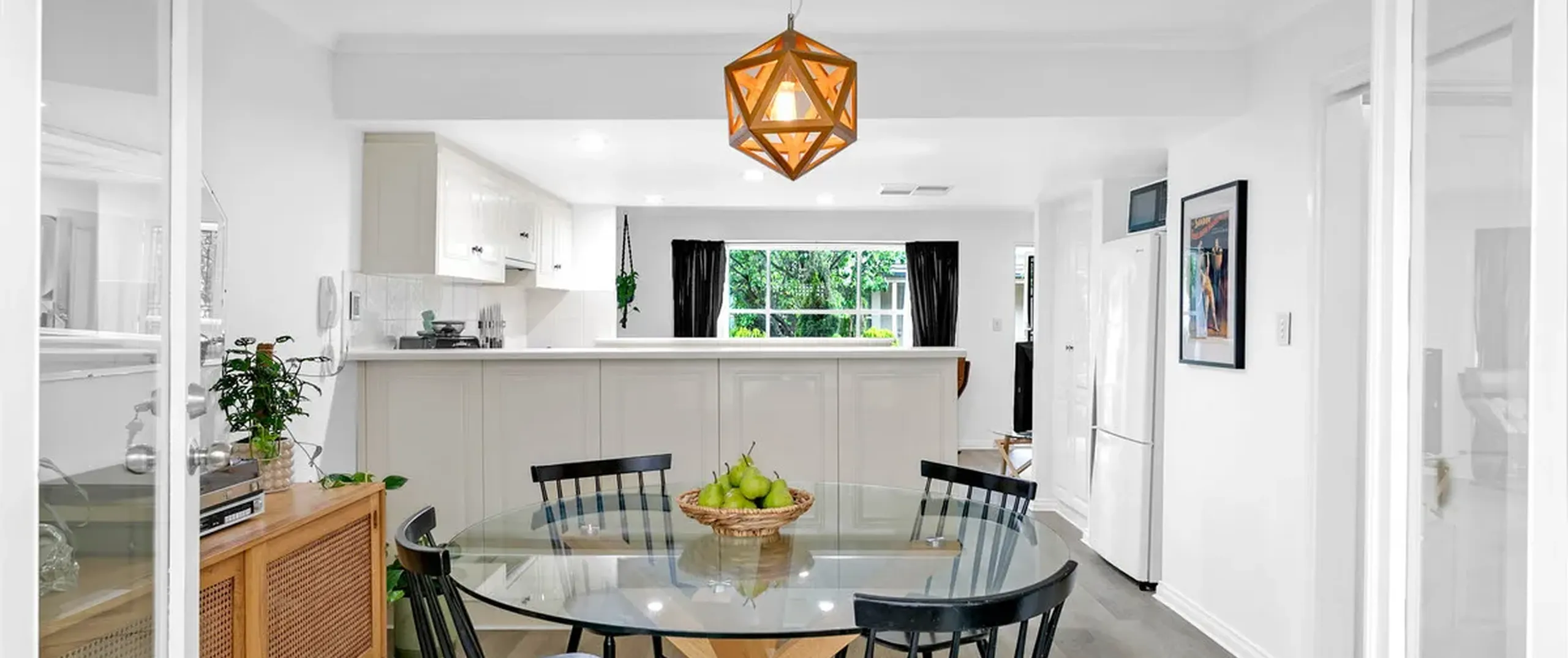 - Meals area adjacent kitchen with double doors opening to the outdoor entertaining area