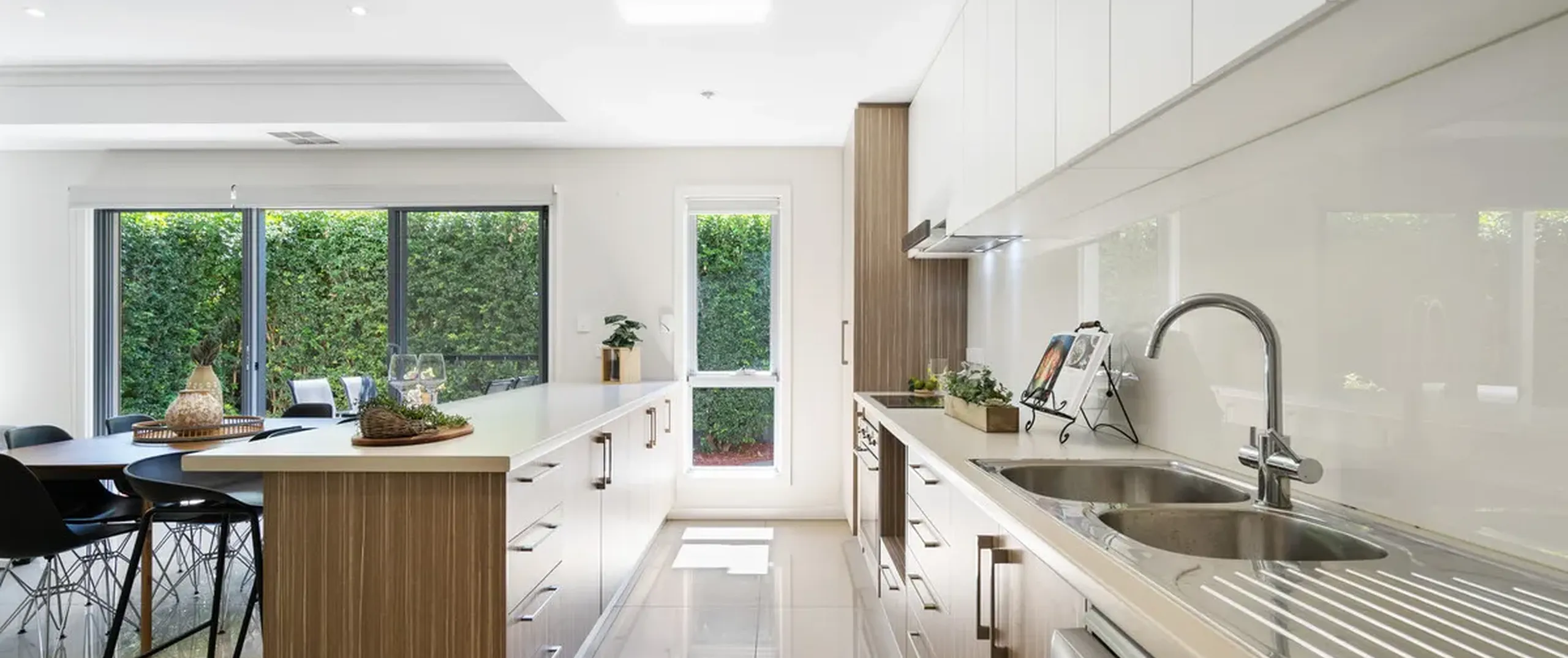 The quality is immediately apparent with both space and custom features in abundance. The kitchen is well equipped for home chefs of all varieties with extra bench space via the breakfast bar and quality appliances and space for all to cook up a storm. The open plan living area offers space for both dining and living in style without the need to compromise on either.