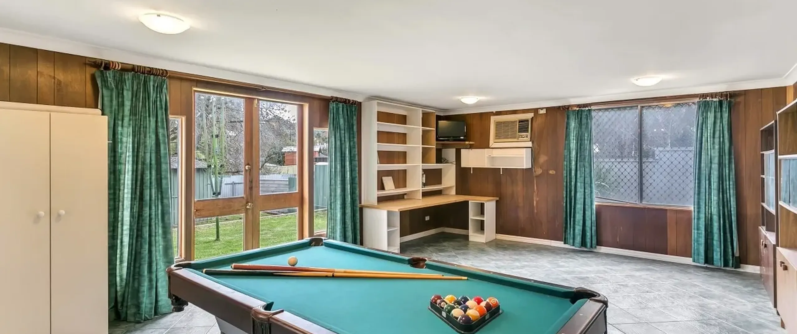- Large rumpus/games room with built-in cupboards, desk and reverse cycle air conditioner