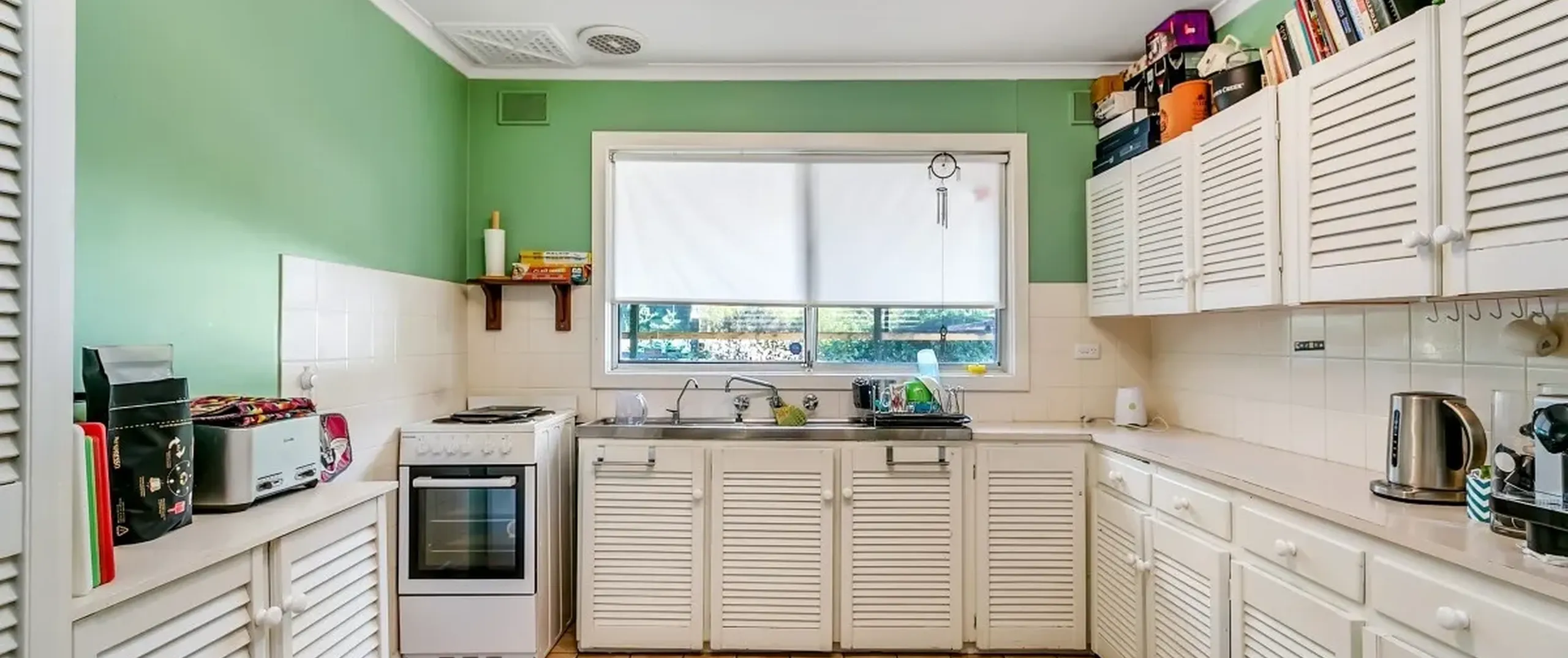 - Functional kitchen with freestanding oven and ample bench and cupboard space