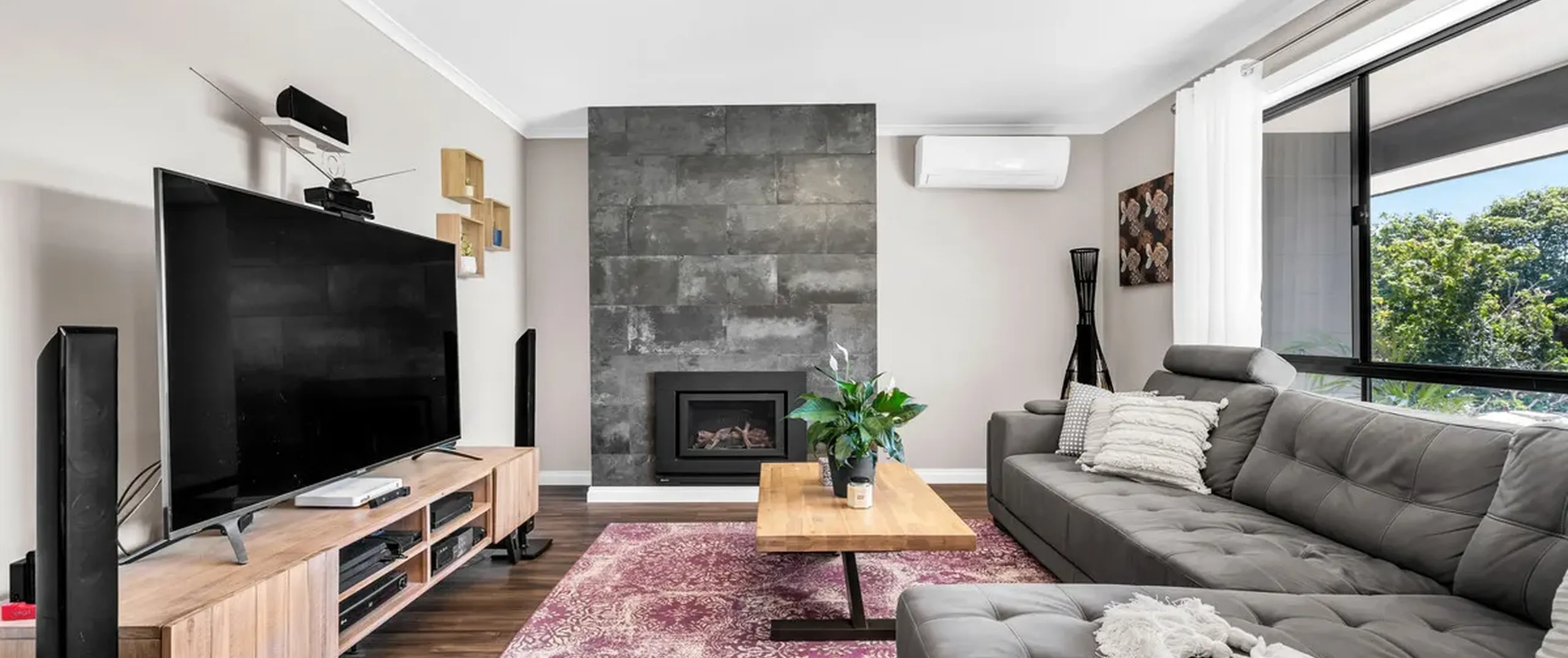 - Light filled and spacious formal lounge room with stunning tiled gas log fireplace and split system air conditioner