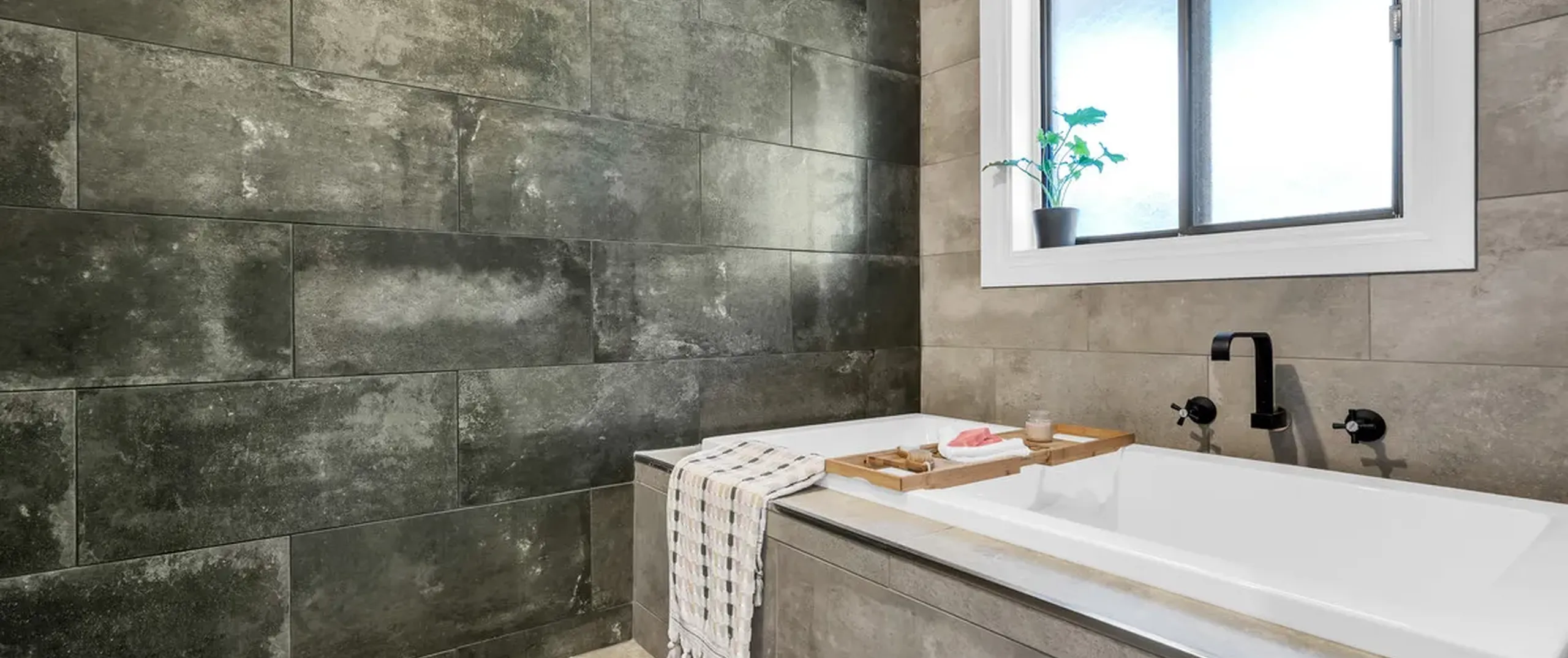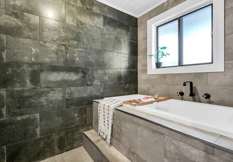 - Gorgeous three-way main bathroom with step-up bath and separate shower, featuring floor to ceiling tiling