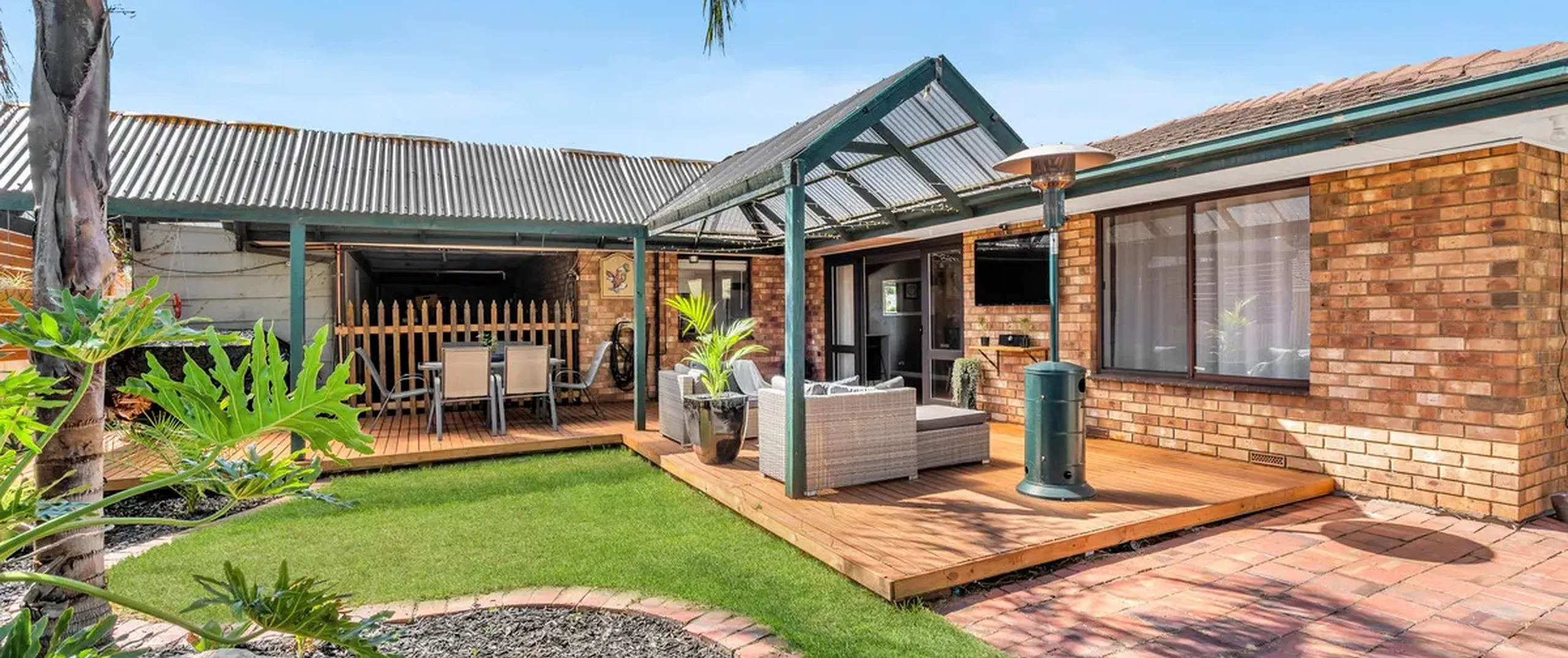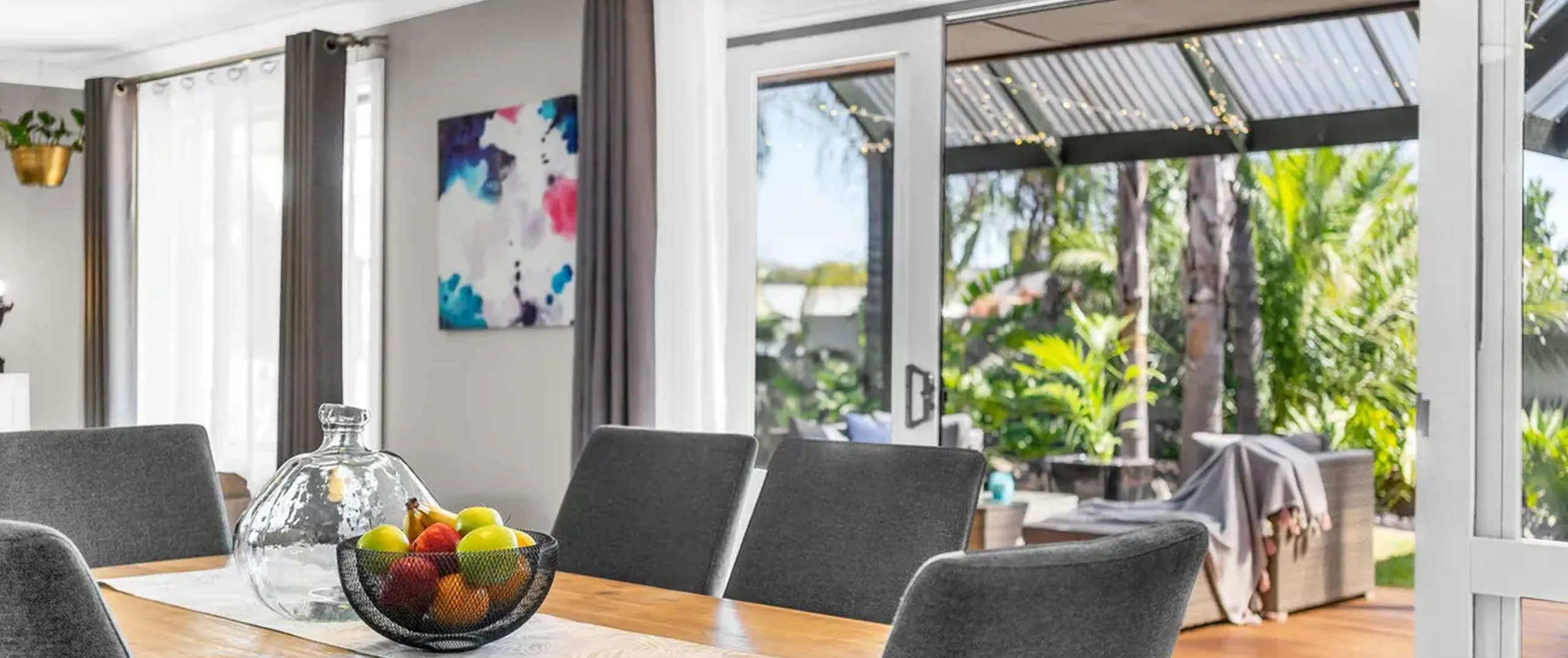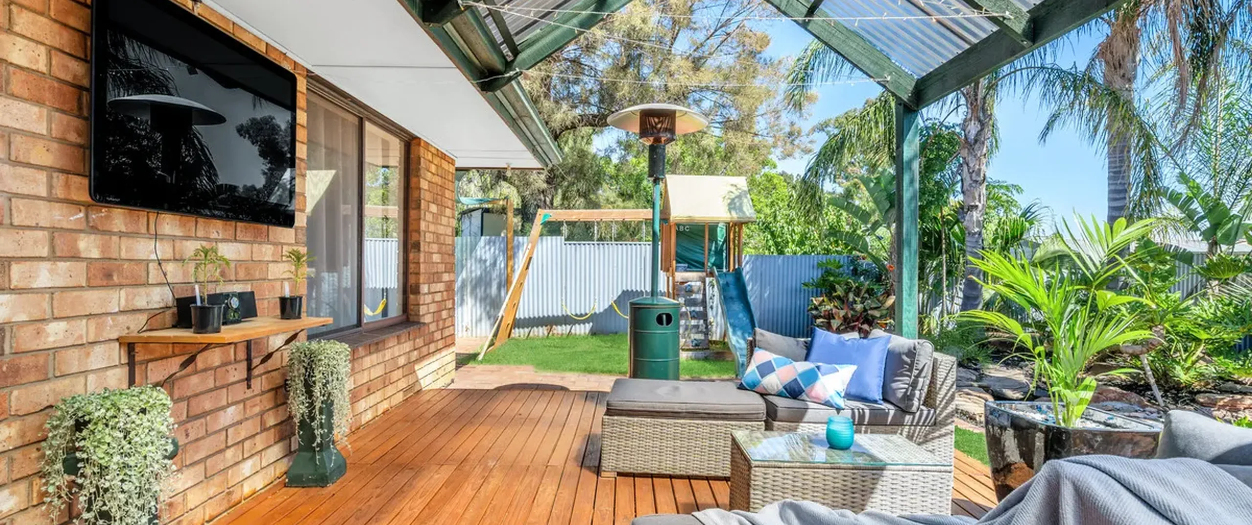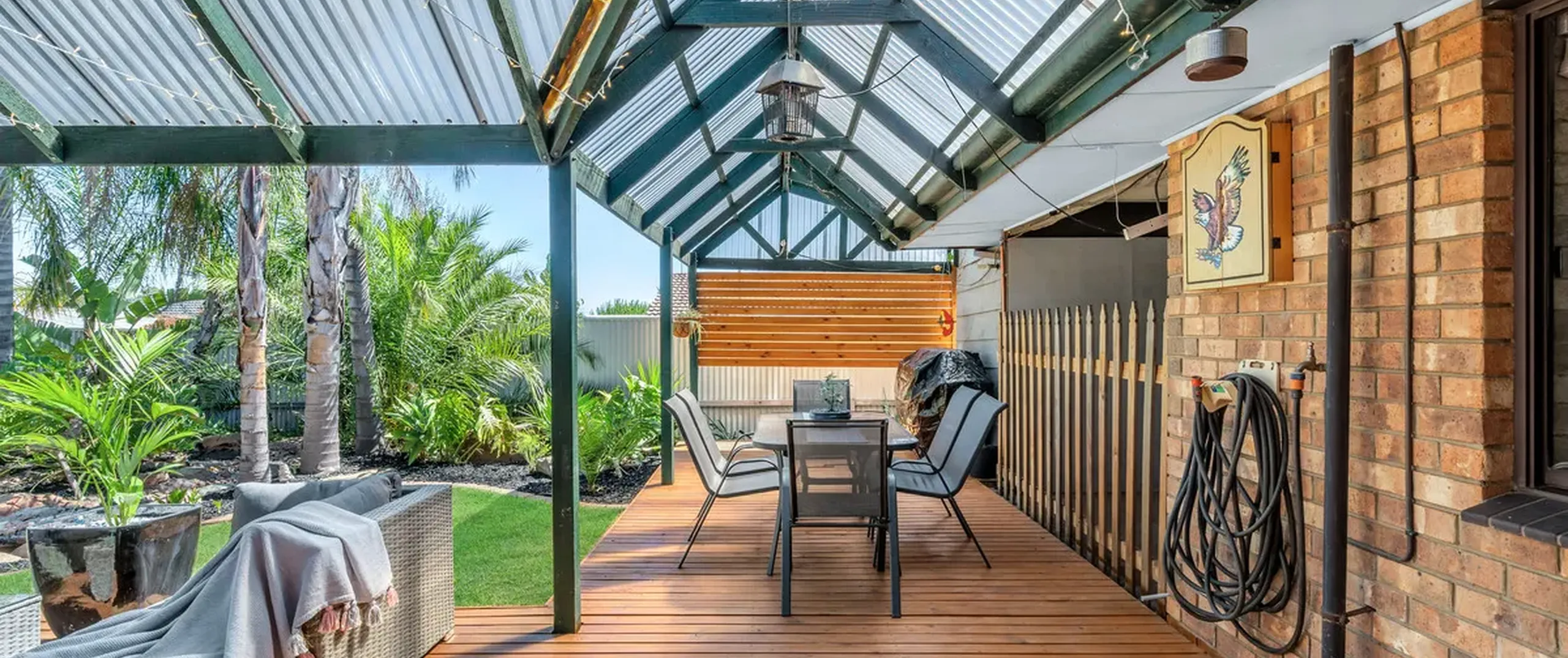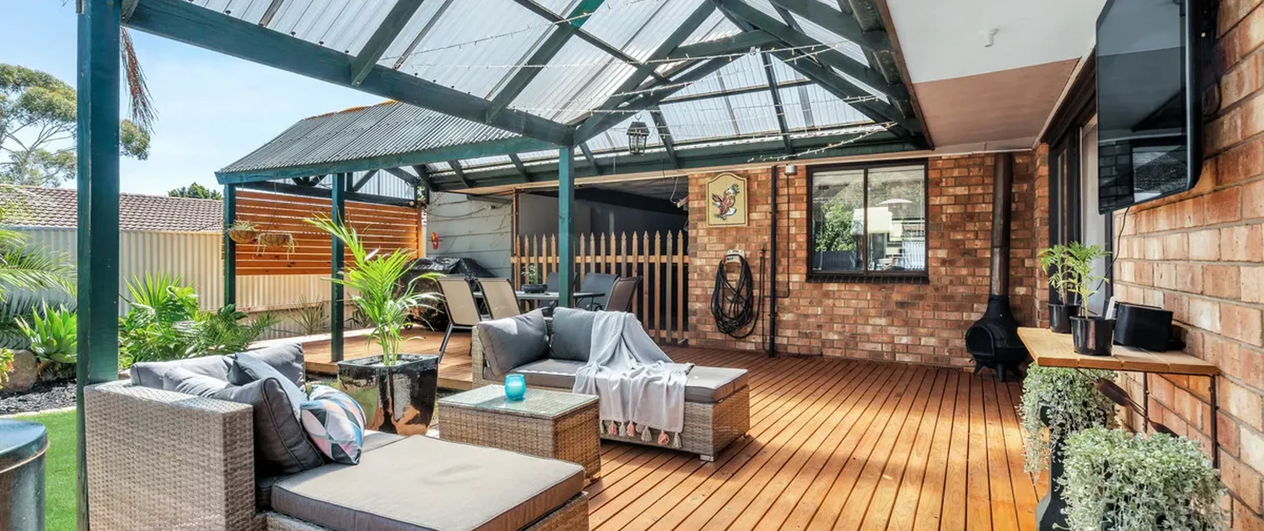 - Spectacular decked outdoor entertaining area with a pitched roof