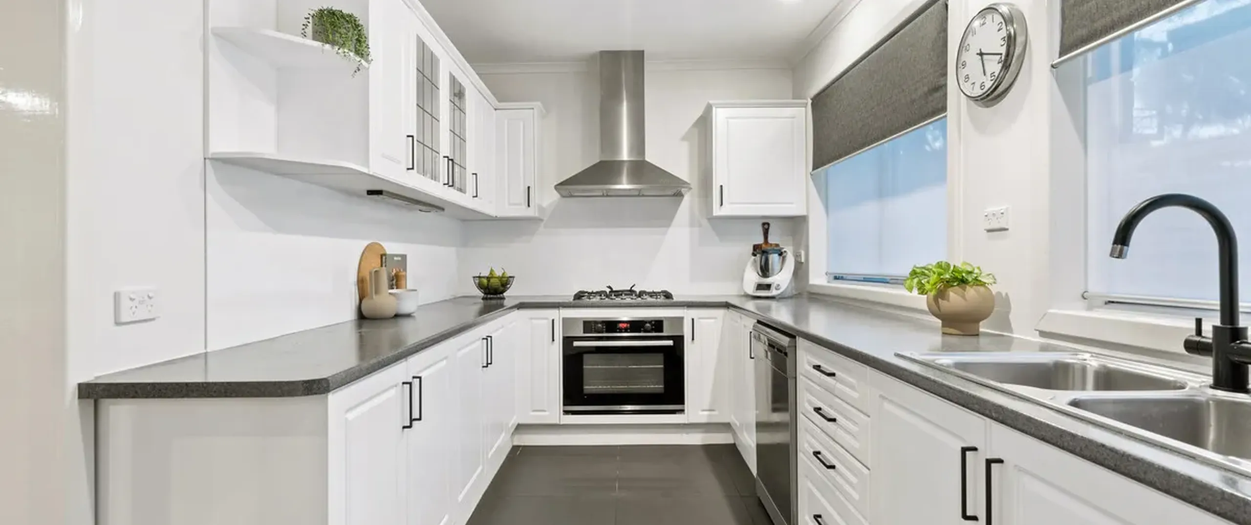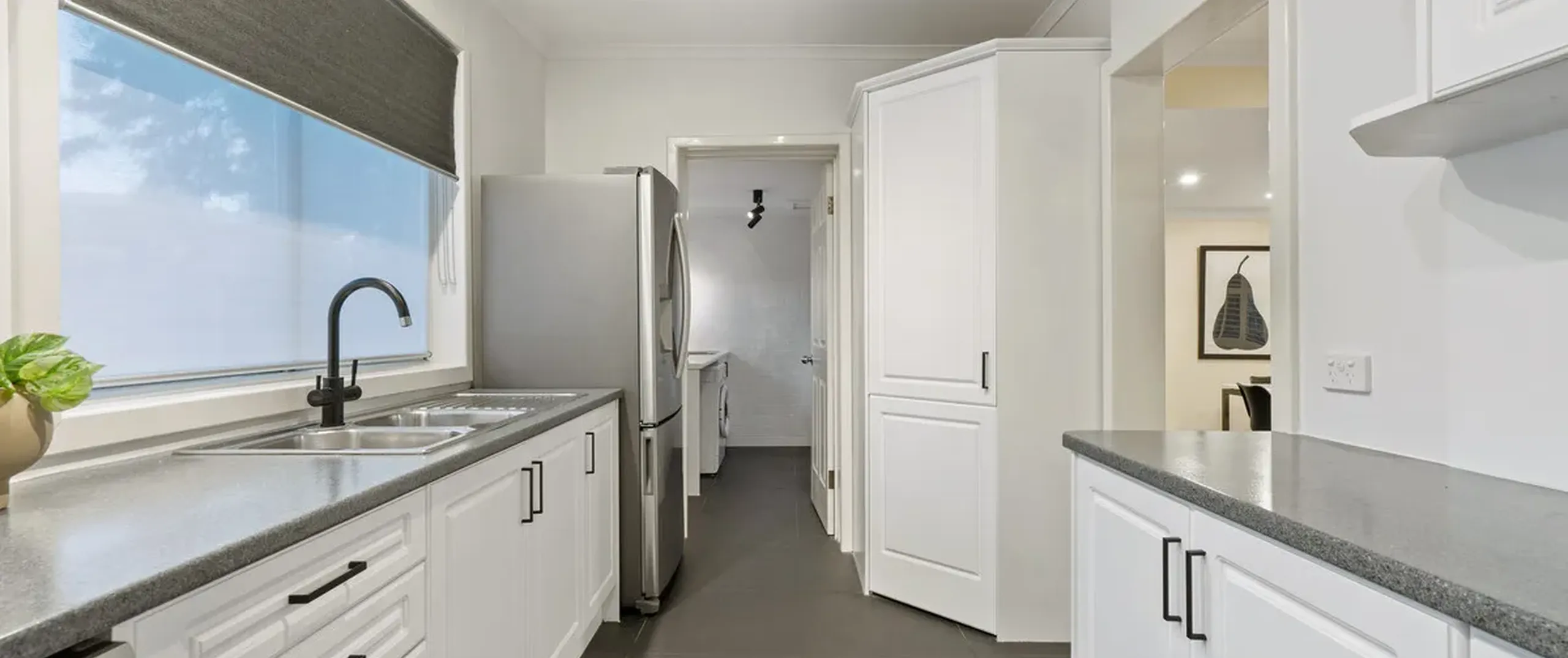 - Stylish renovated kitchen featuring a gas cooktop, walk-in pantry, ample cupboard space and stainless-steel appliances including dishwasher and oven