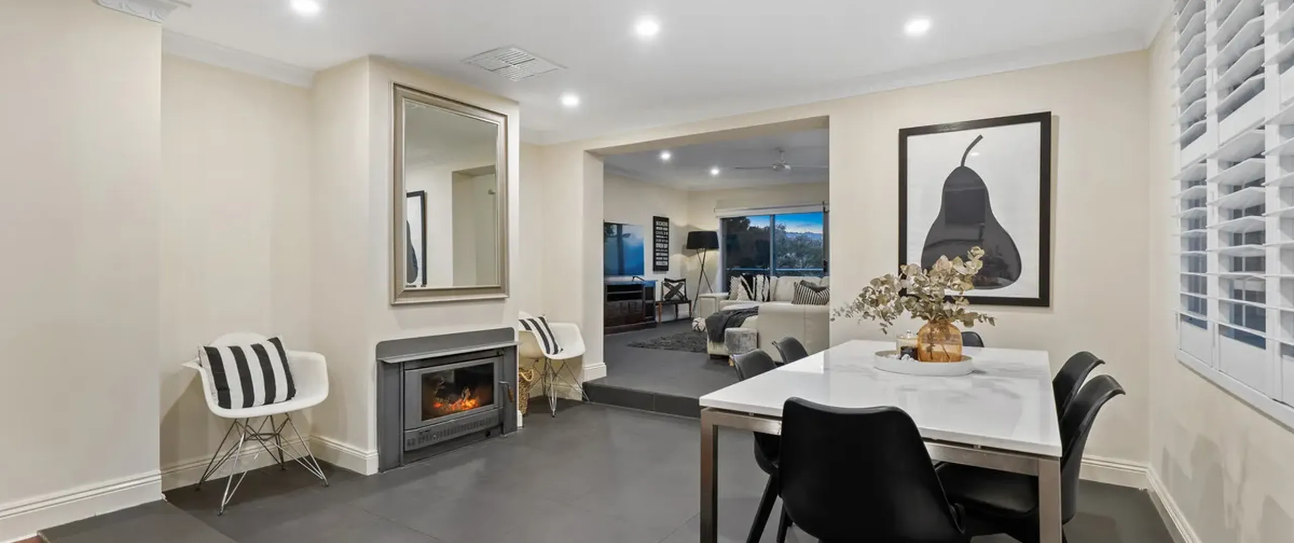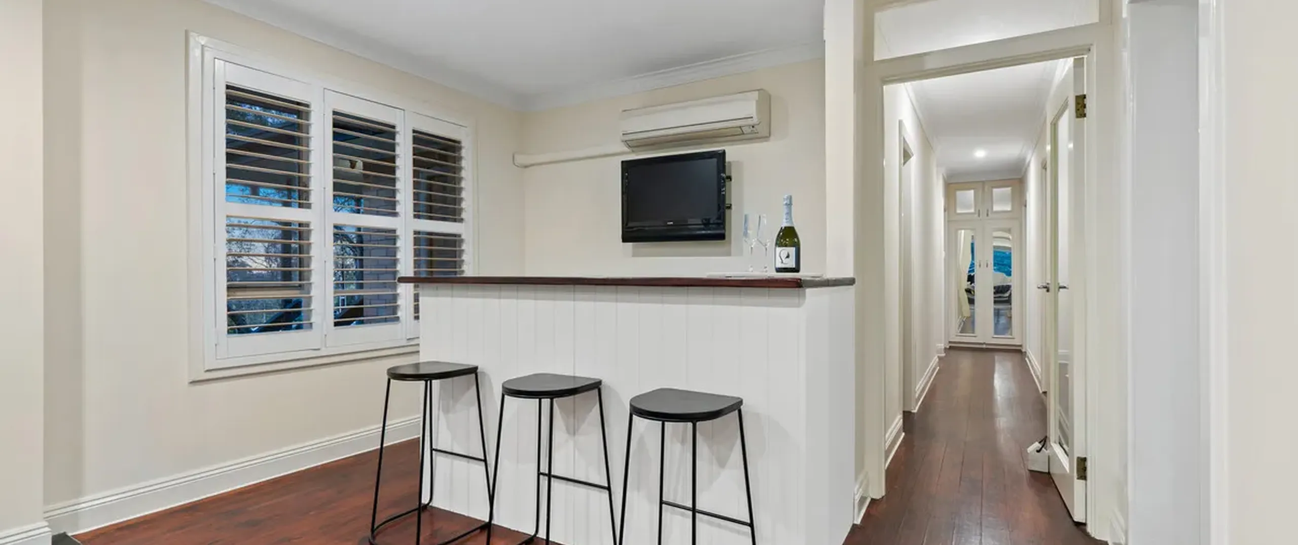 - Separate dining room boasting a built-in bar, combustion heater and split system air conditioner for year-round comfort
