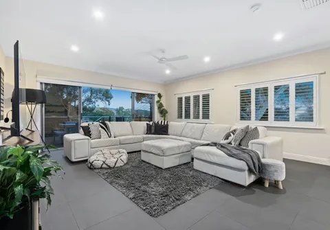 - Large family room, complete with ceiling fan and glass sliding doors flowing seamlessly through to the patio