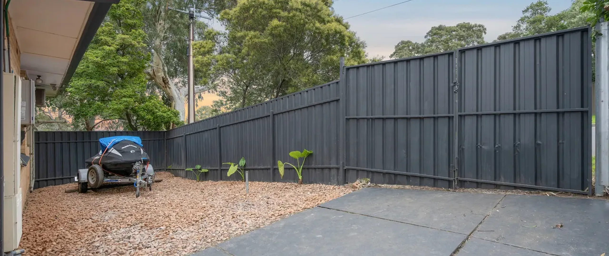 - Side access with double gates, allowing potential storage for a boat, trailer or caravan