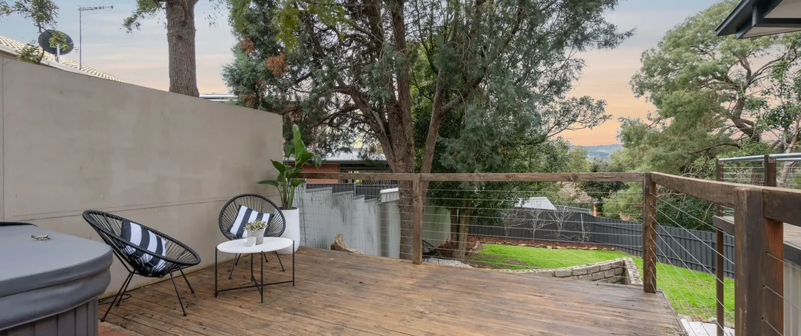 - Decked patio, providing the perfect spot to entertain while enjoying views of the city and the hills