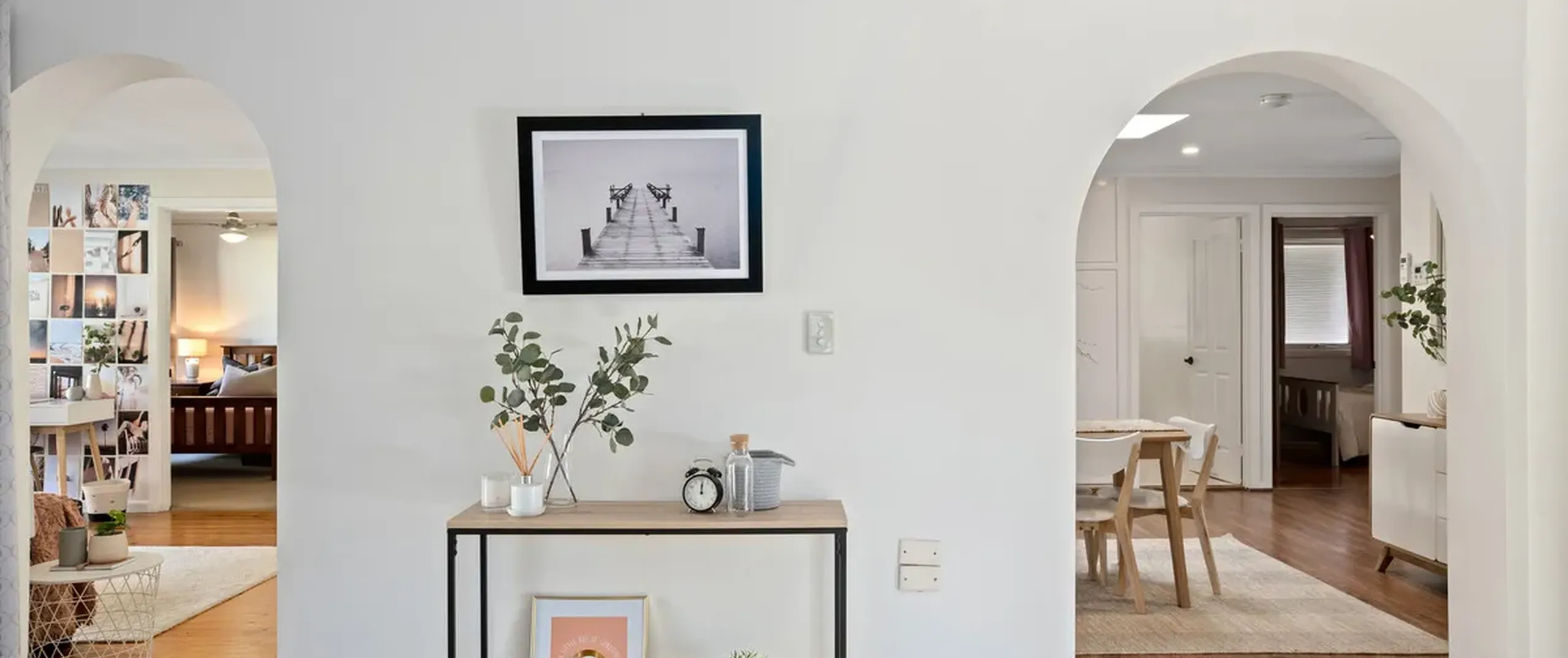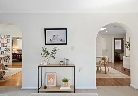 Featuring light filled and airy spaces, eye catching archways, polished timber flooring underfoot and crisp white finishes throughout, with multiple living spaces, four well equipped bedrooms, two bathrooms and a large rear yard.