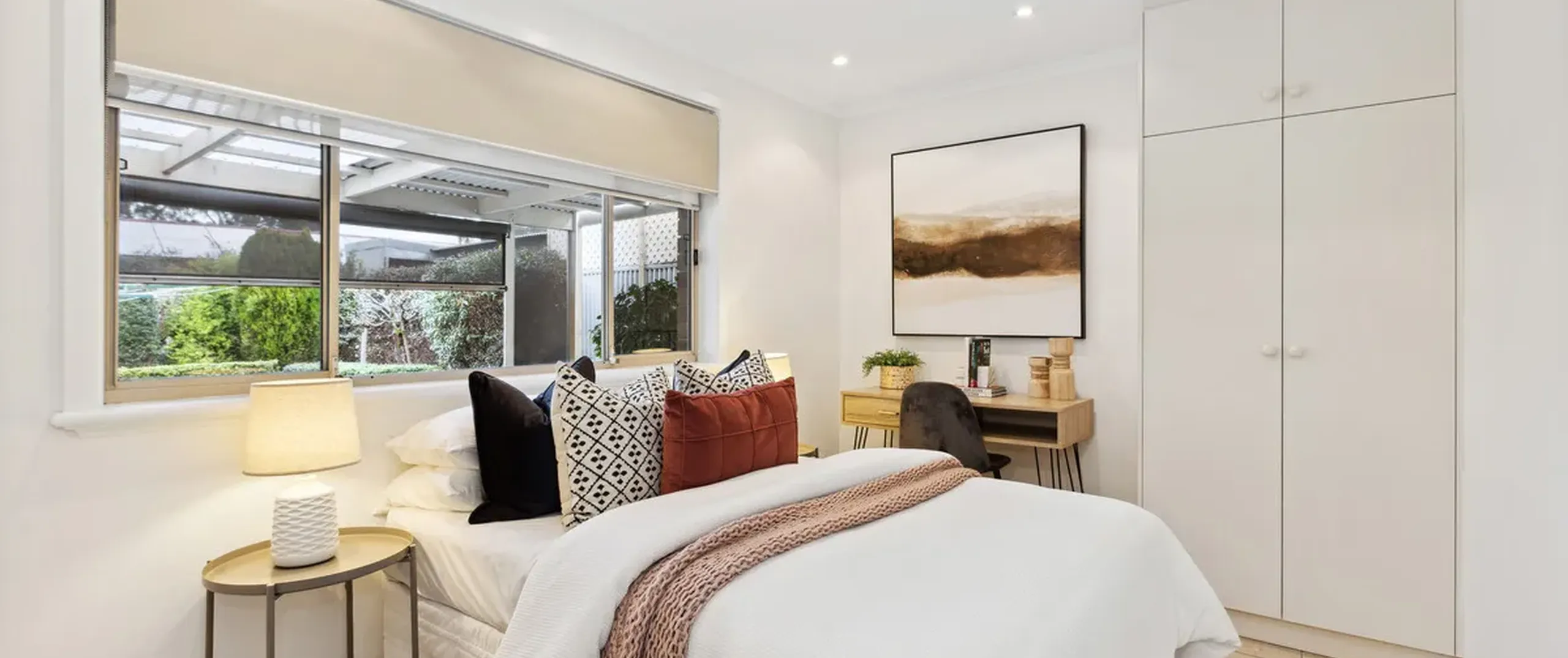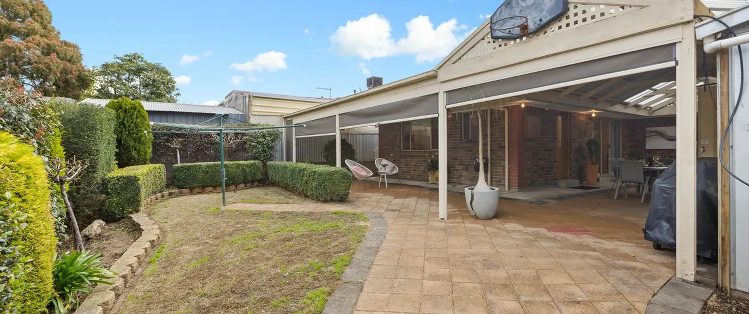 - Spacious undercover, paved entertaining space complete with two ceiling fans and café blinds perfect for year-round entertainment