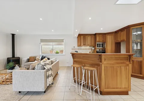 - Lasting timber kitchen with ample cupboard and bench space, breakfast bar, top-quality stainless-steel appliances and spacious pantry