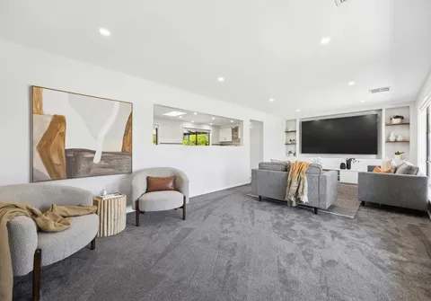 - Large formal lounge with plush carpet and built-in TV unit and led lit shelves