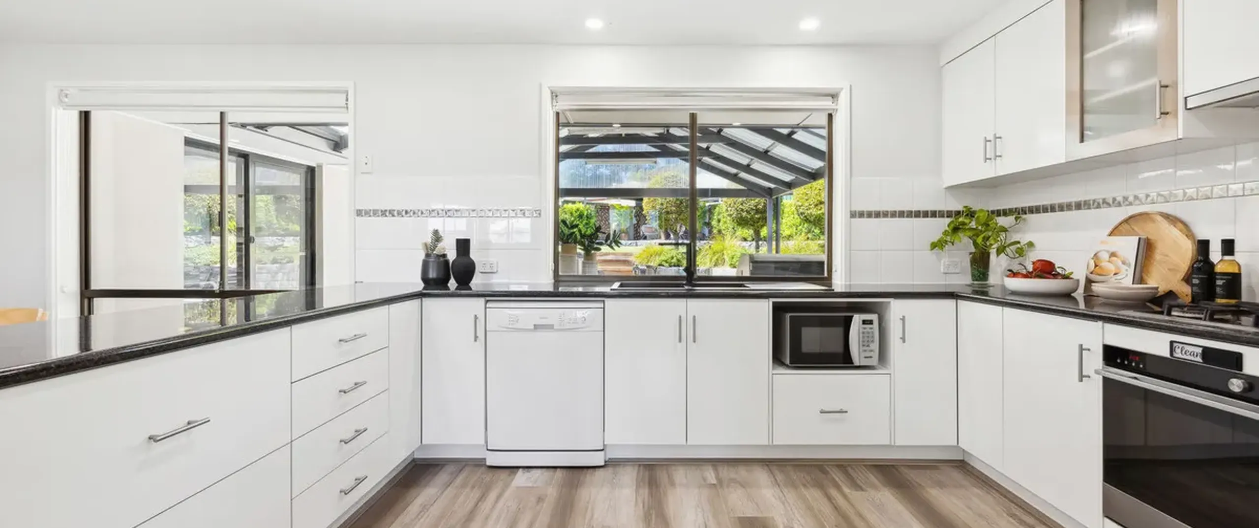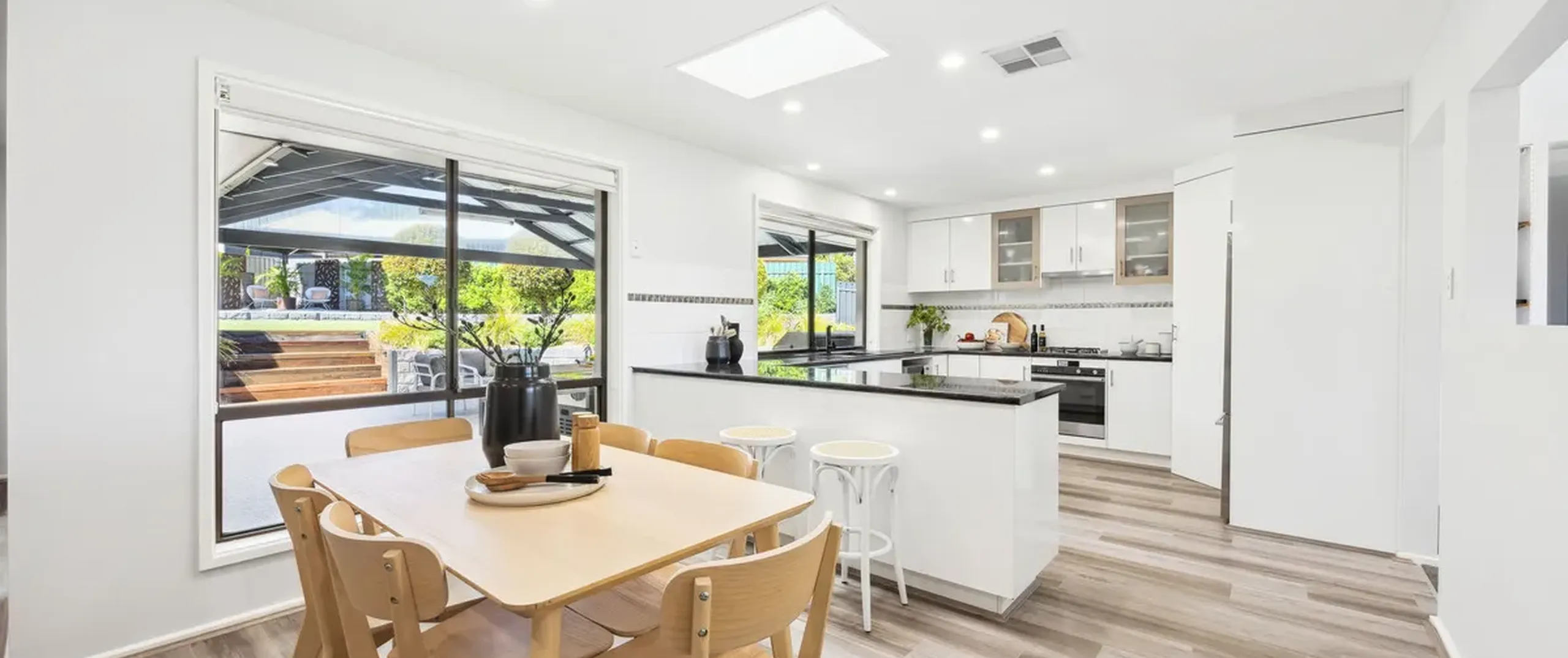 - Modern kitchen complete with dishwasher, gas cook top, skylight, breakfast bar and ample cupboard and bench space