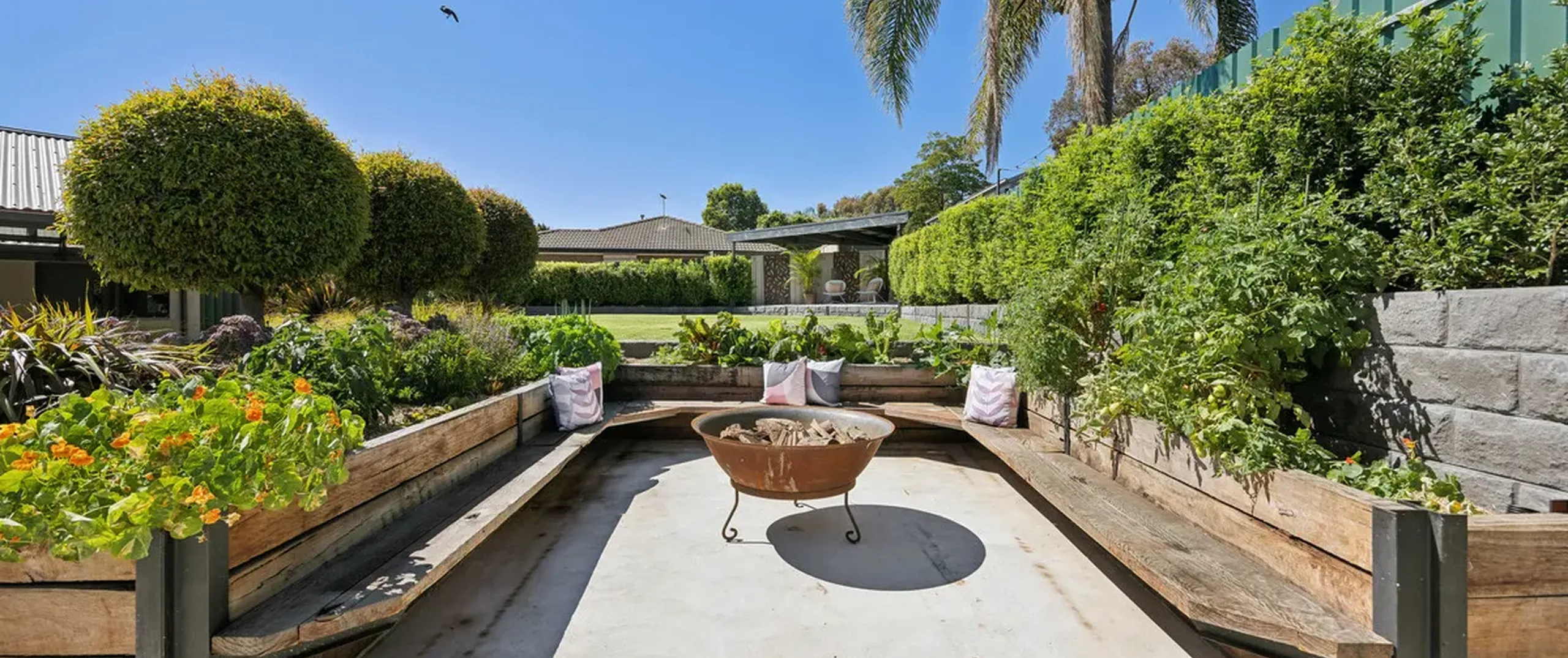 - Wrap around vegetable garden around the fire pit area for the passionate home cook