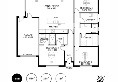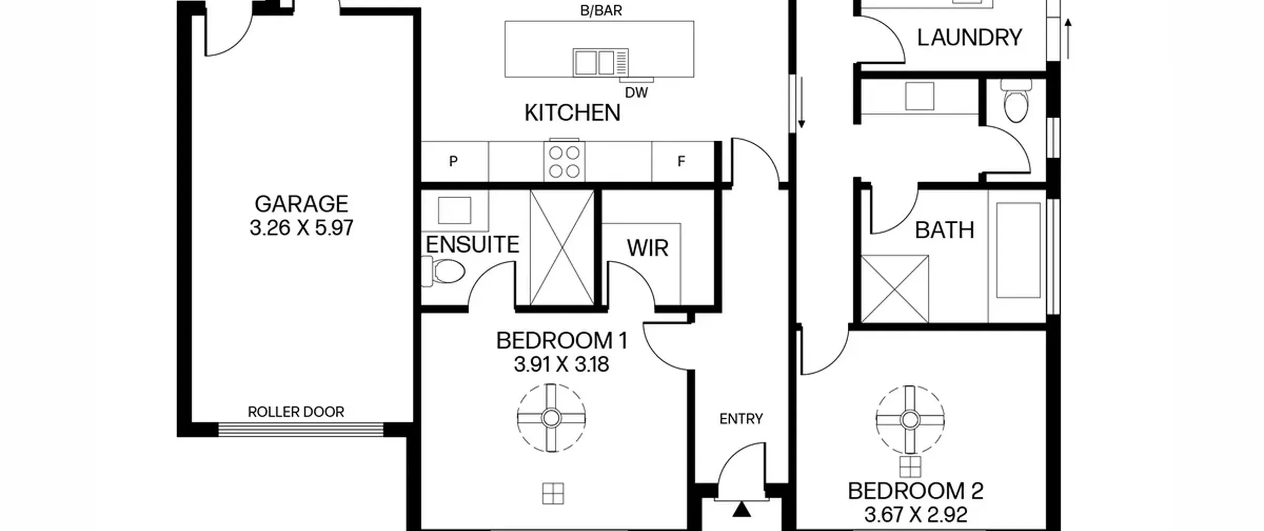 - Bedrooms two and three situated separately to the right of the home and featuring ceiling fans
