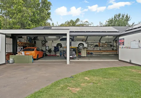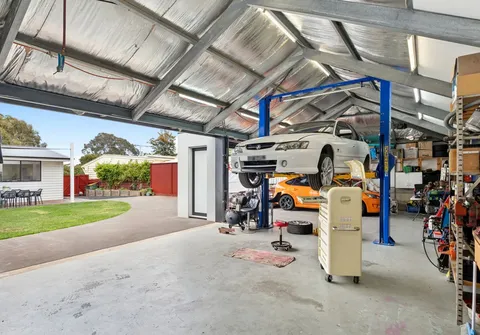 The main home features a modern kitchen with stainless steel appliances and timber look floors that add a fresh contemporary feel. A formal lounge and two additional bedrooms expand family comfort while the substantial, insulated rear workshop and drive through access offer outstanding practicality.