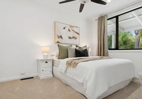 The fully serviced granny flat provides an excellent solution for multigenerational living, visiting relatives or independent teens, offering its own bedroom, ensuite and open plan living with quality kitchen appliances. Comfort is assured with split system air conditioning and ceiling fans.