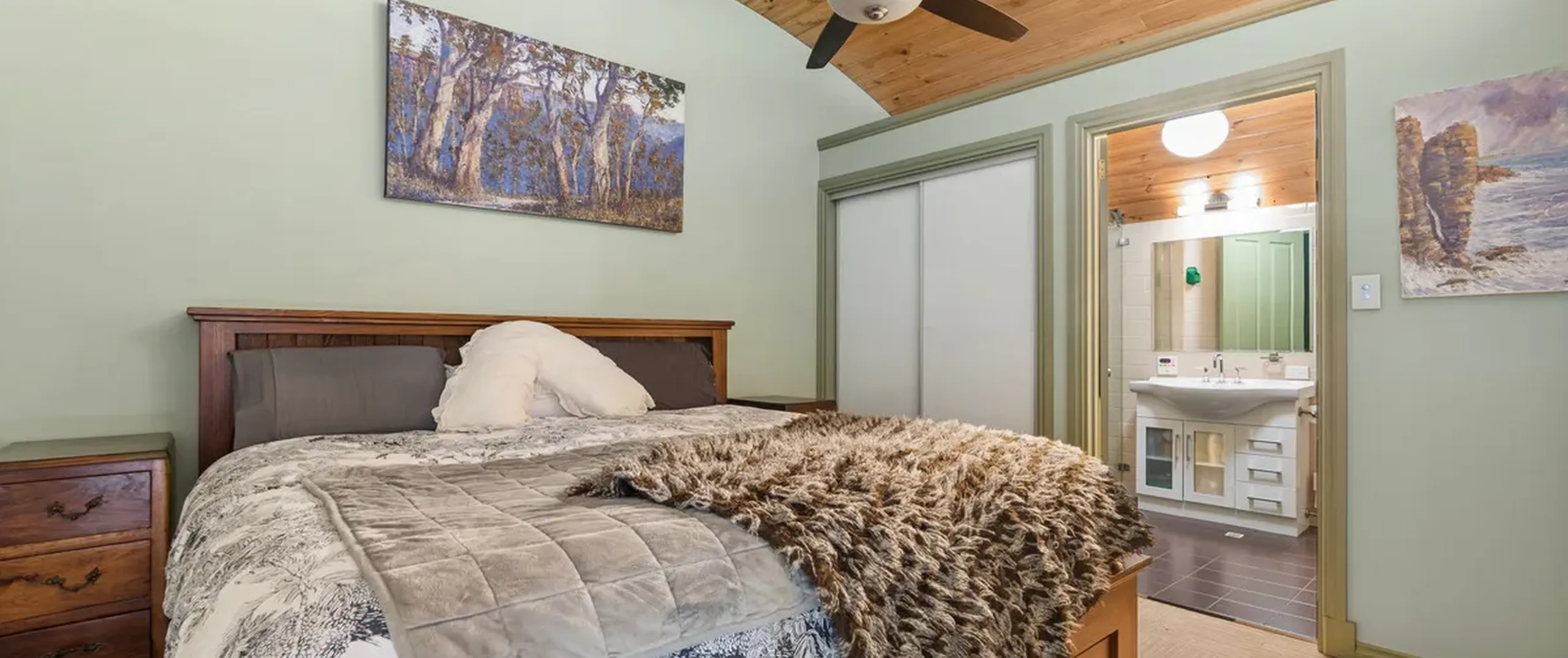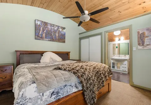 - Granny flat bedroom with ceiling fan and built in robe