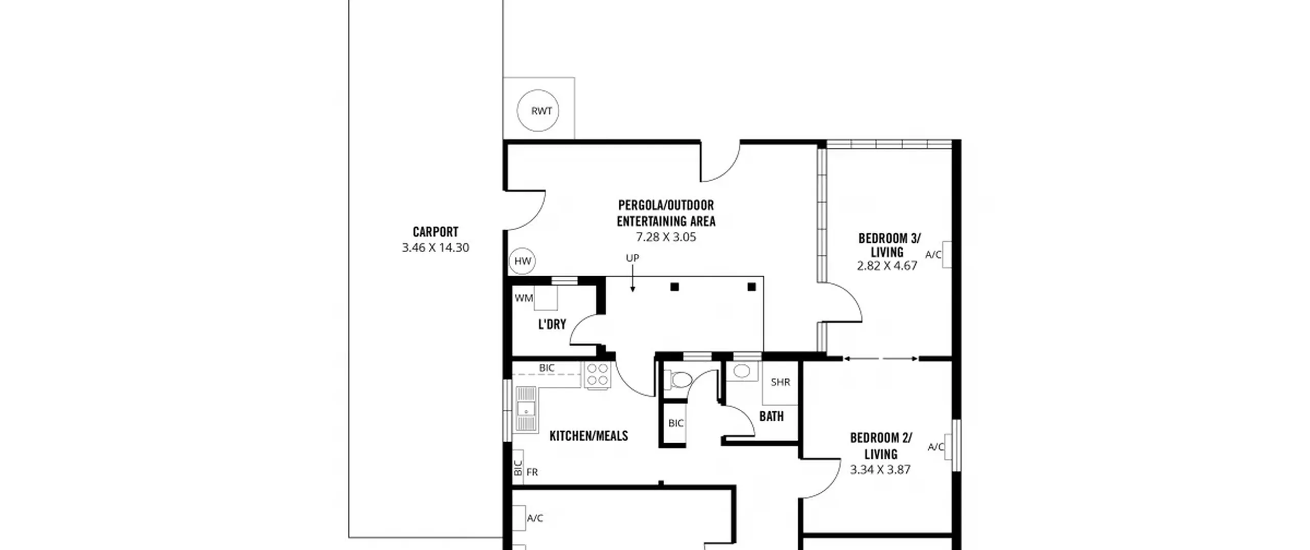 - Generous sized bedrooms 2 and 3/living areas with air conditioner