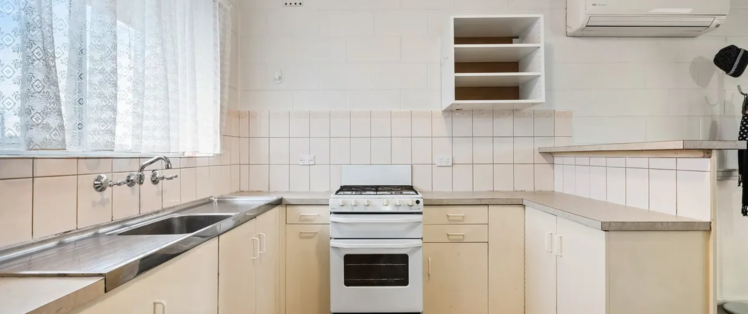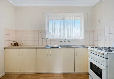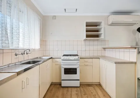 - Practical dine-in kitchen with standalone gas oven and cooktop and ample cupboard space
