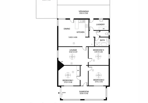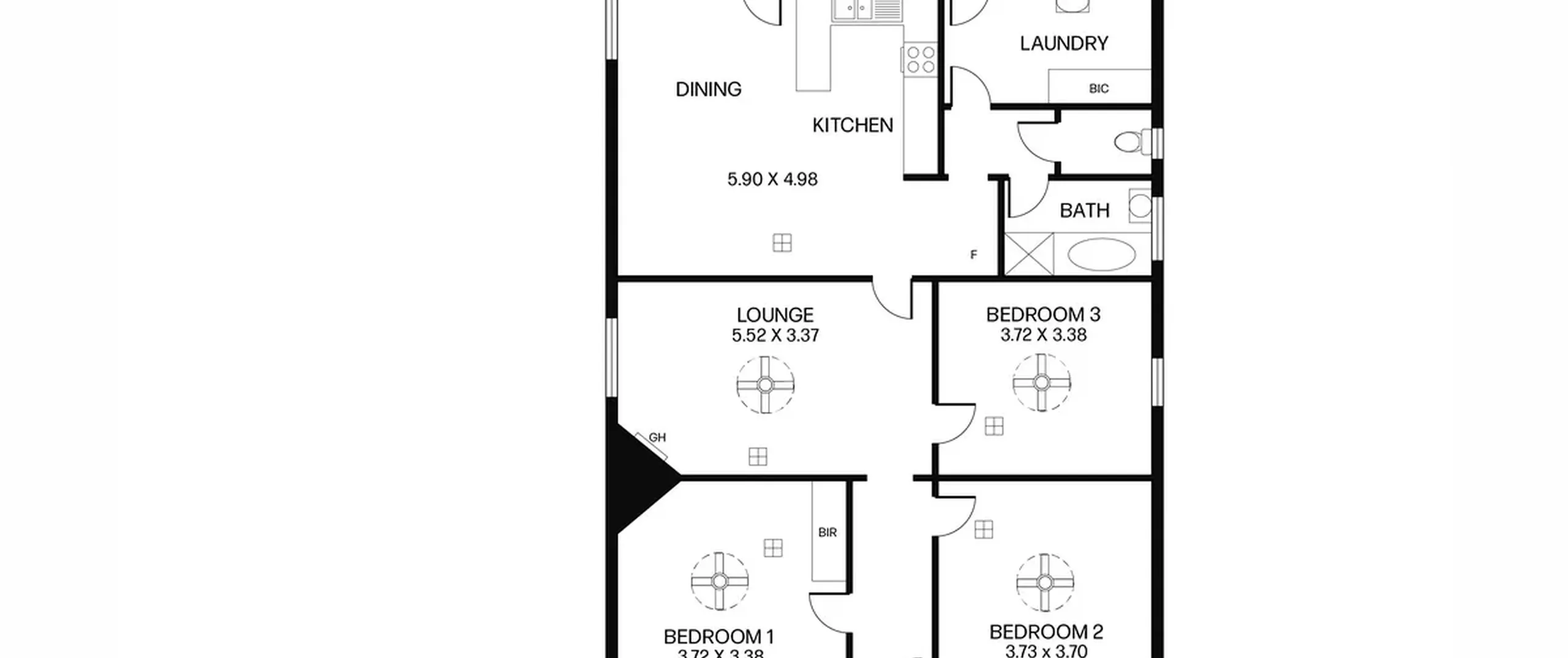 - Three generously sized bedrooms, all with ceiling fans; master includes a built-in robe