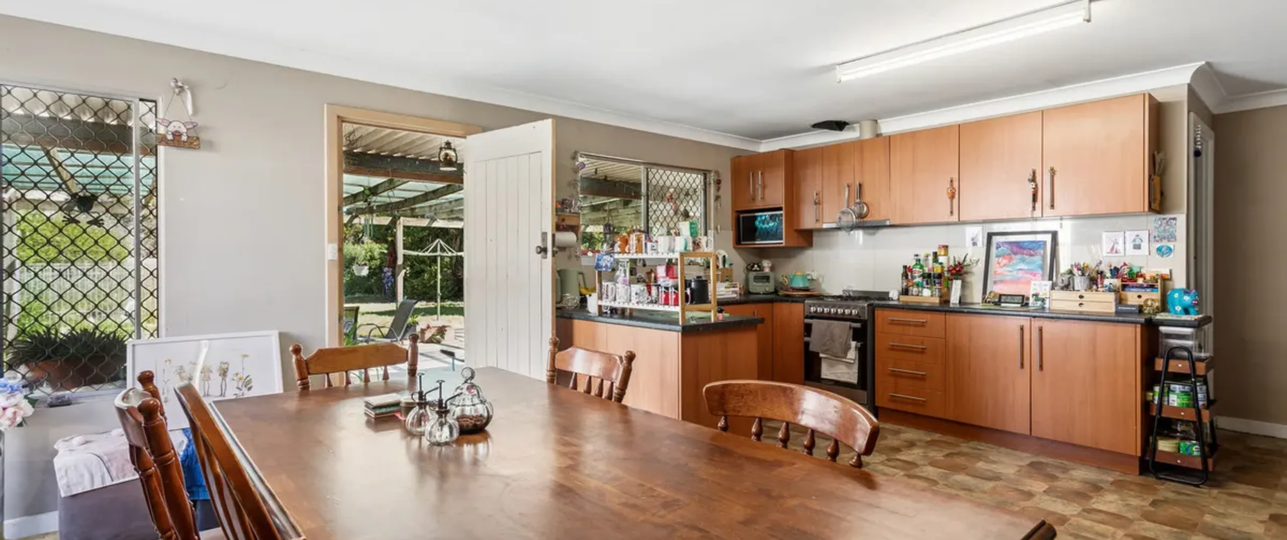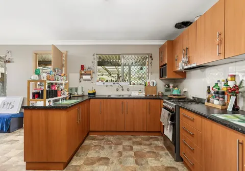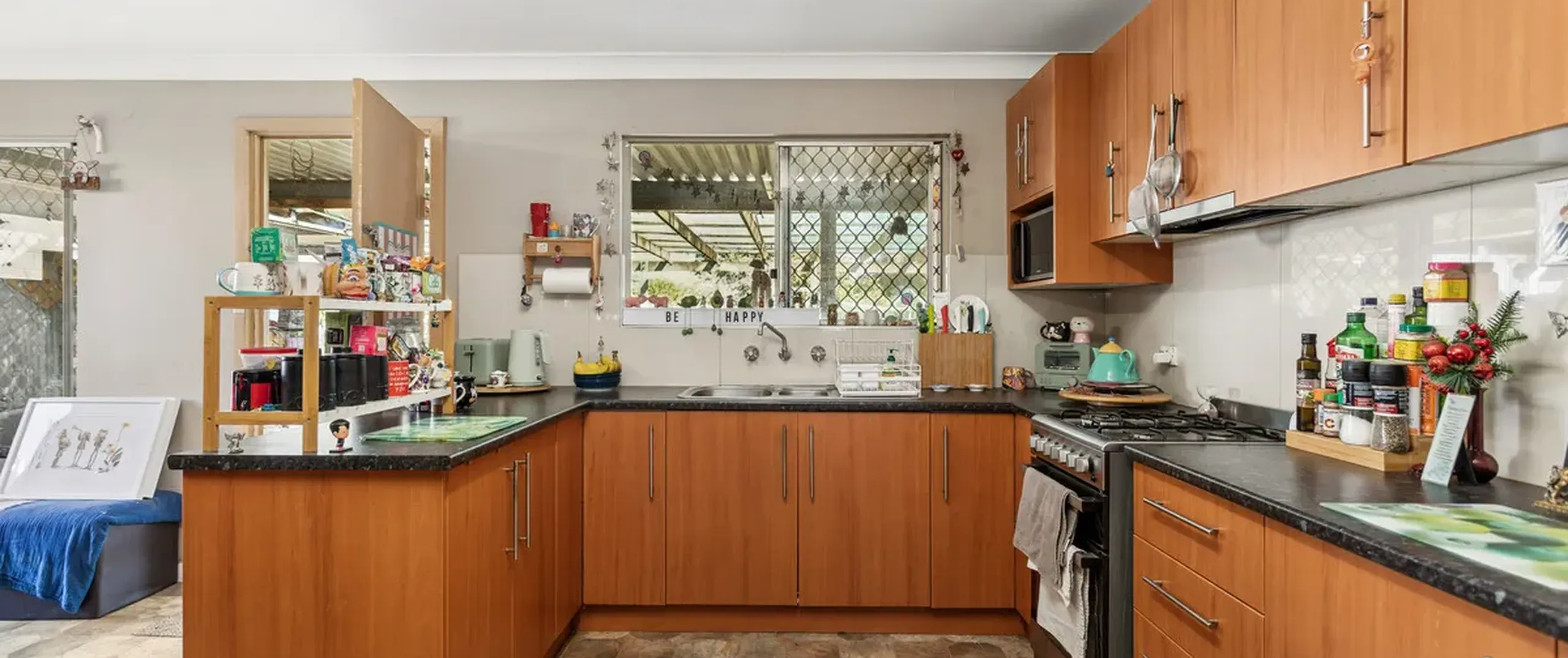 - Functional kitchen with gas cook-top, dual sinks and plenty of cupboard and storage space