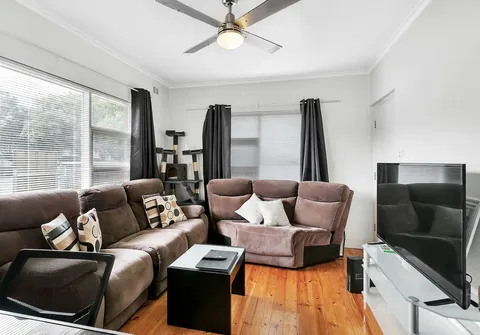 - Light filled living area with ceiling fan and wall unit air conditioner