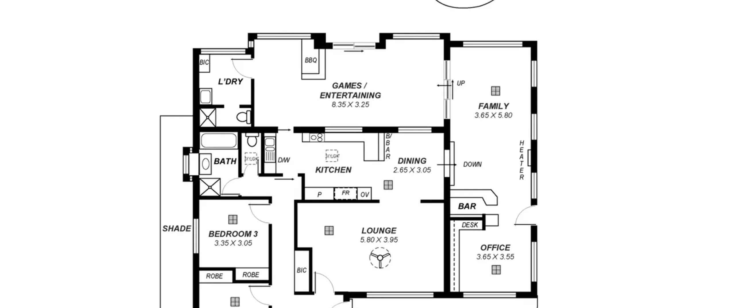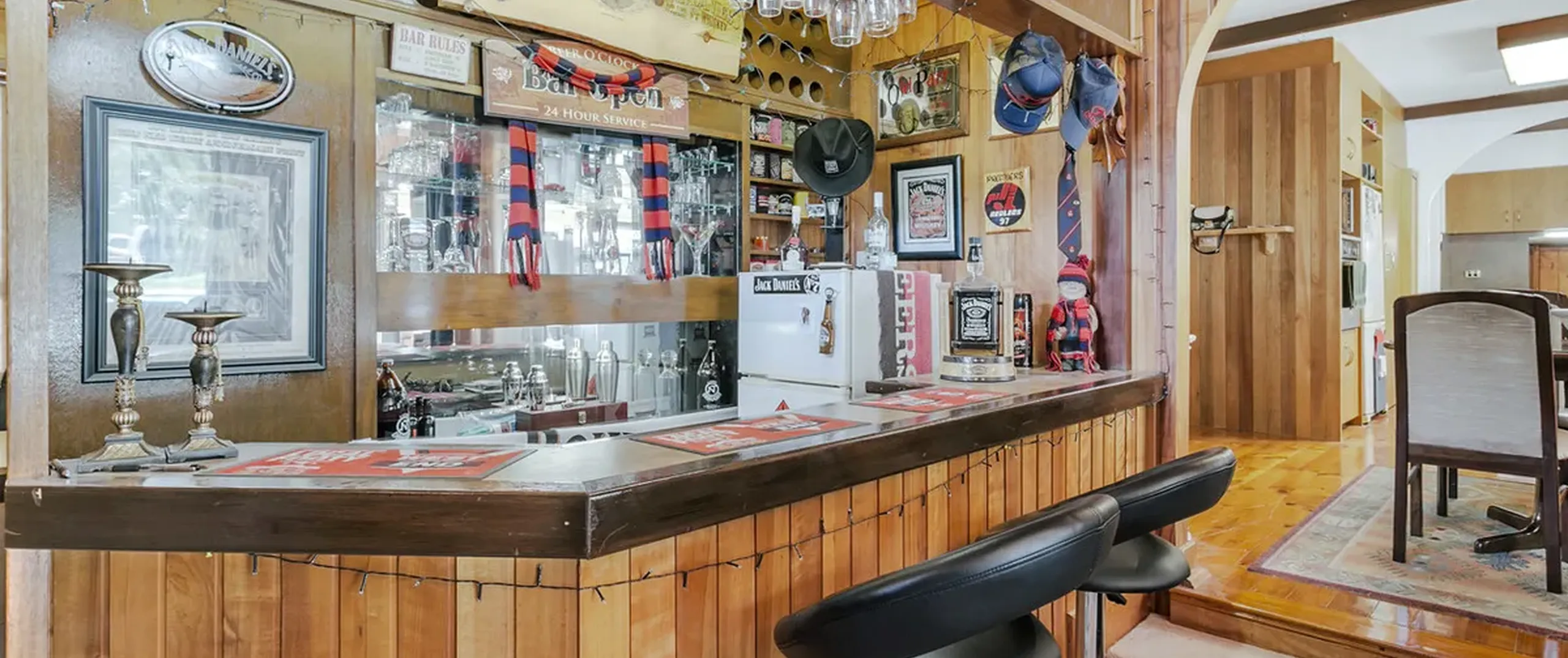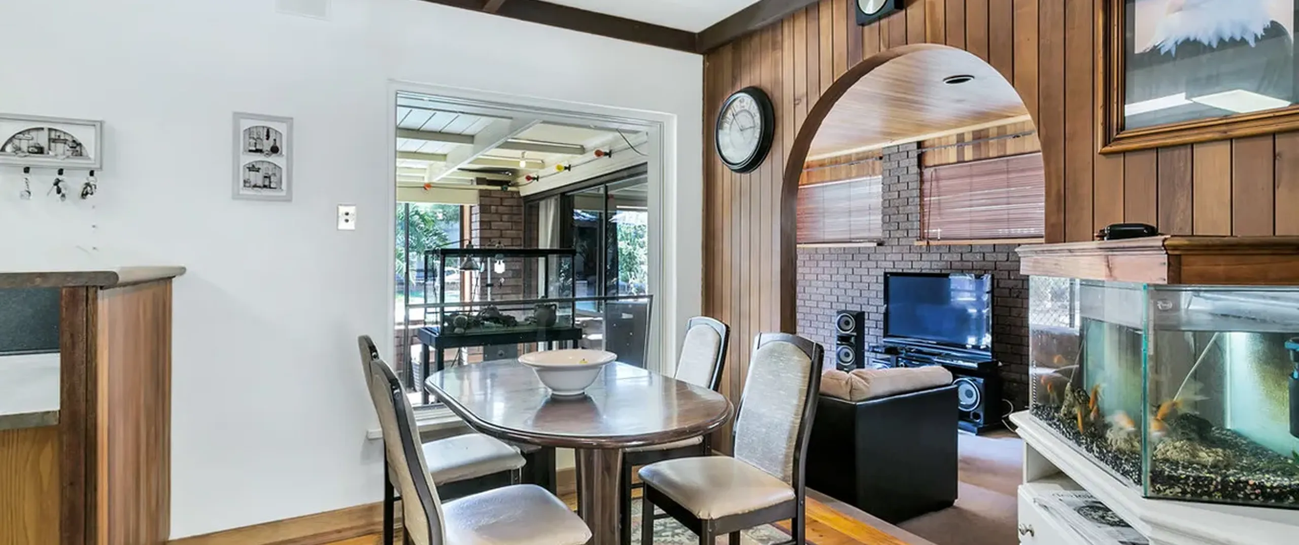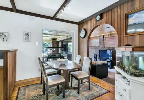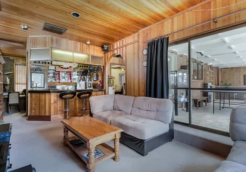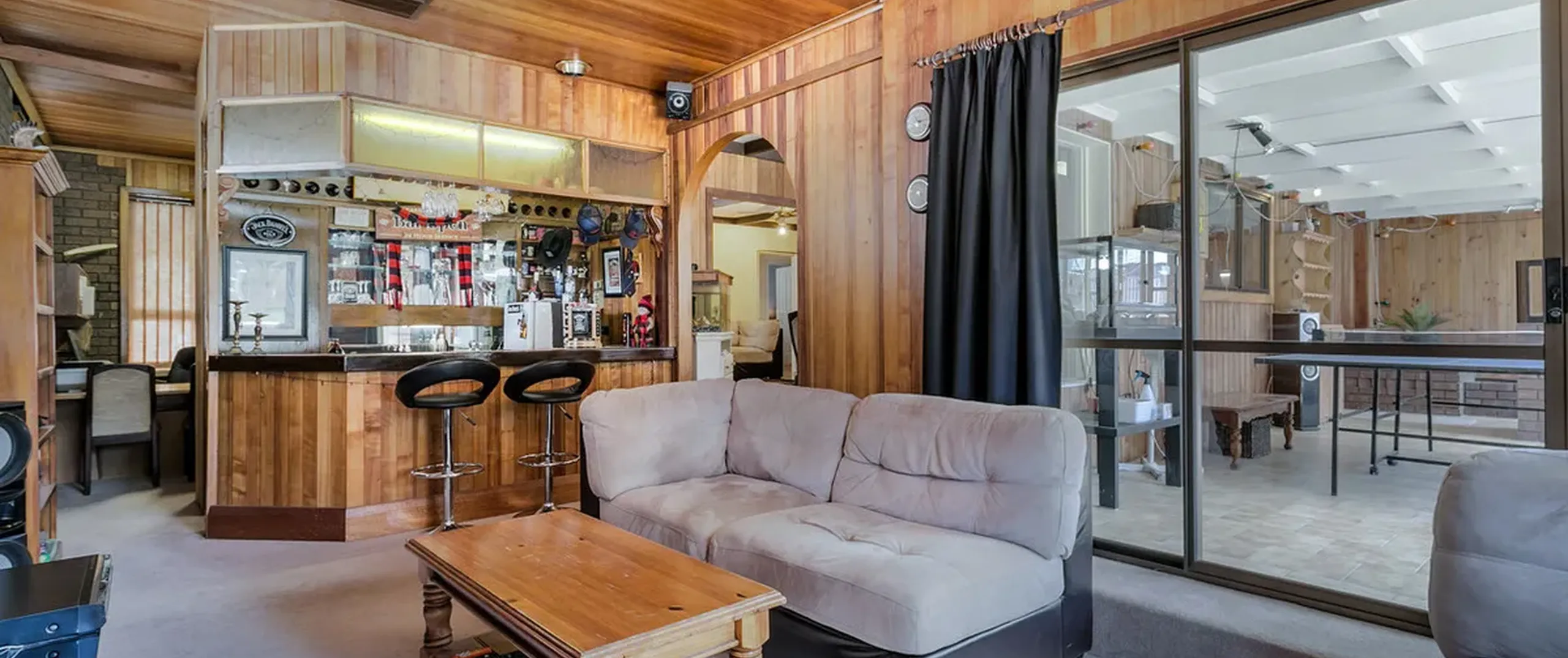 - Light filled family room with built-in bar and gas space heater