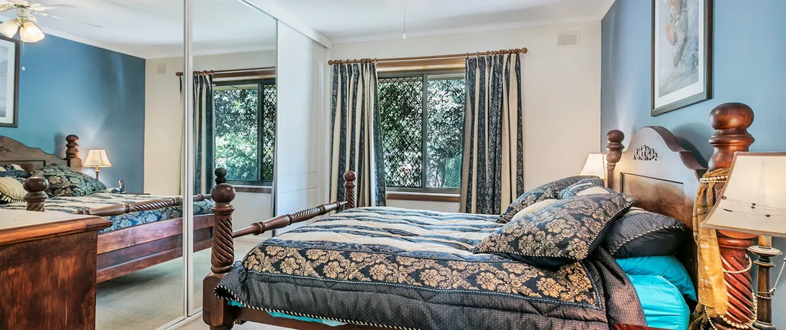 - Master bedroom with built-in robe and ceiling fan