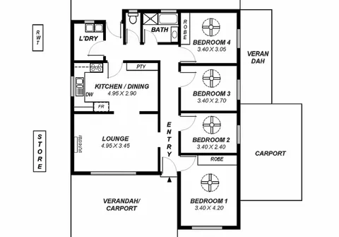 - Good sized bedrooms 2, 3 and 4 all with ceiling fans, bedroom 4 with built in robe