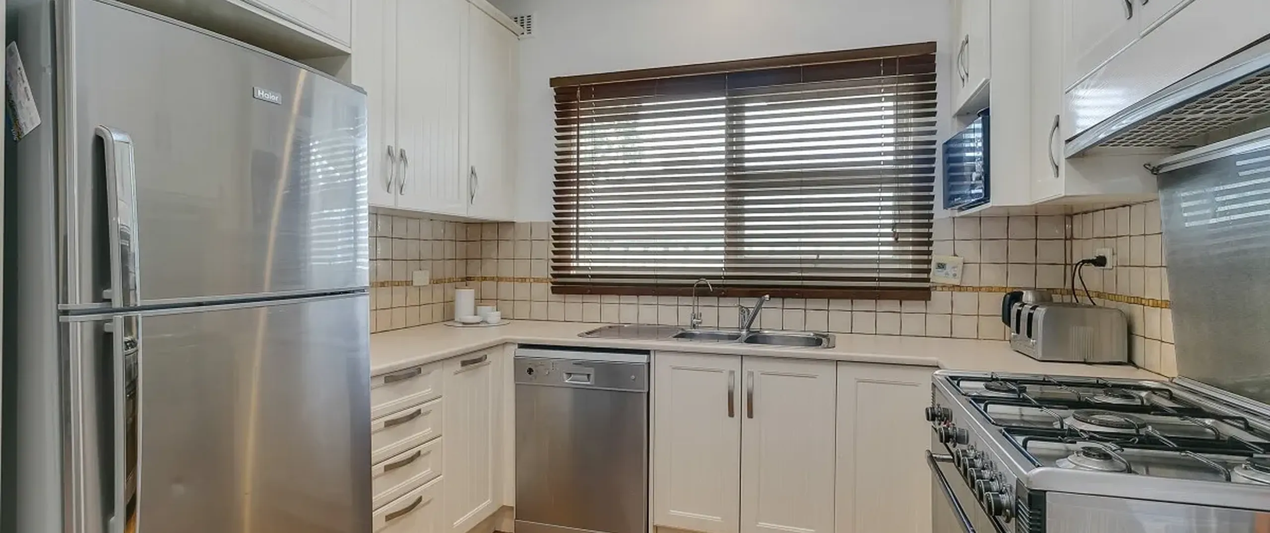 - Functional kitchen with stainless steel dishwasher and gas cooktop