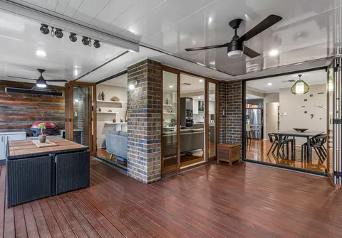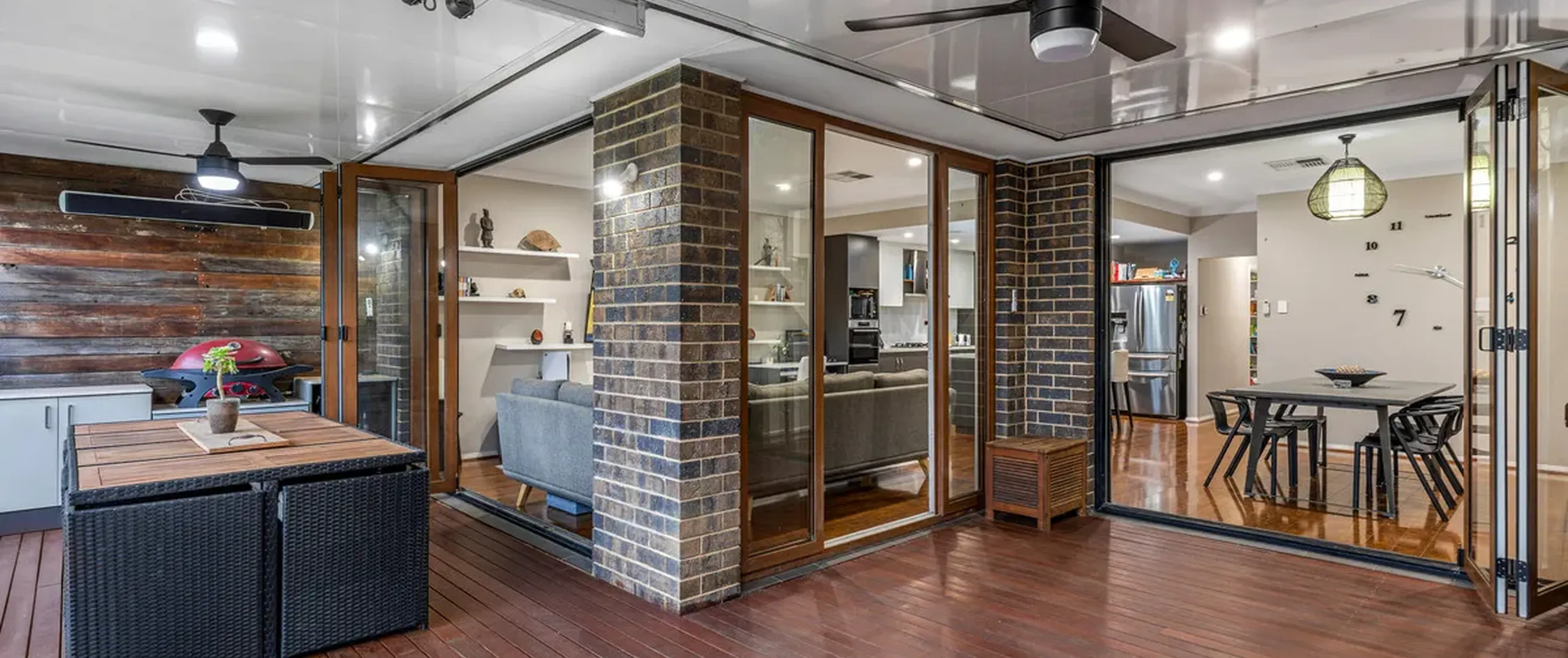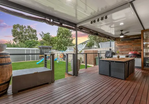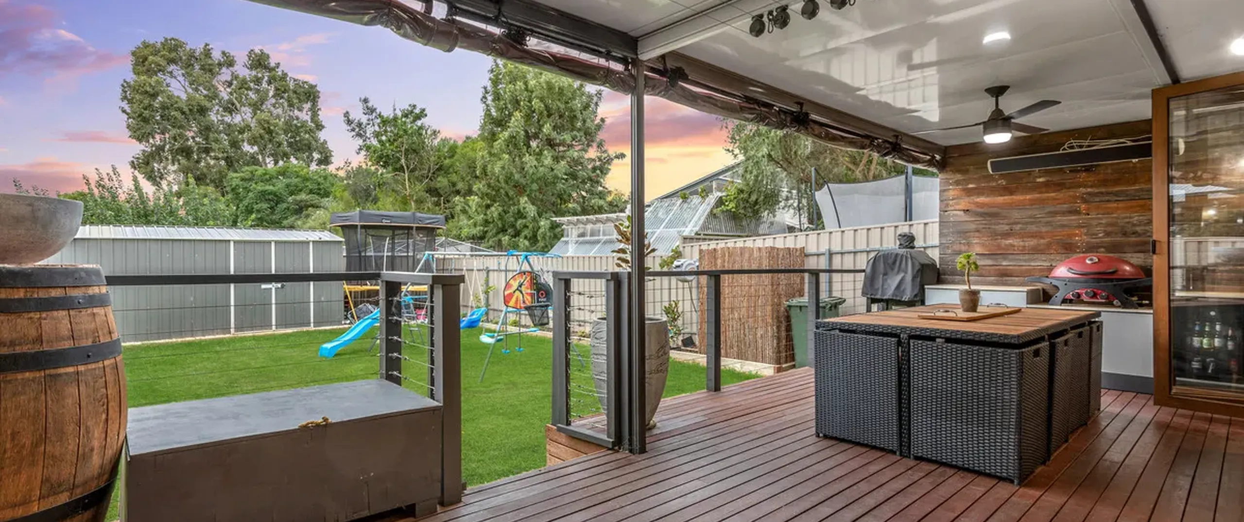 - Decked outdoor entertaining area with ceiling fans and blinds to enclose the space for the cooler months ahead