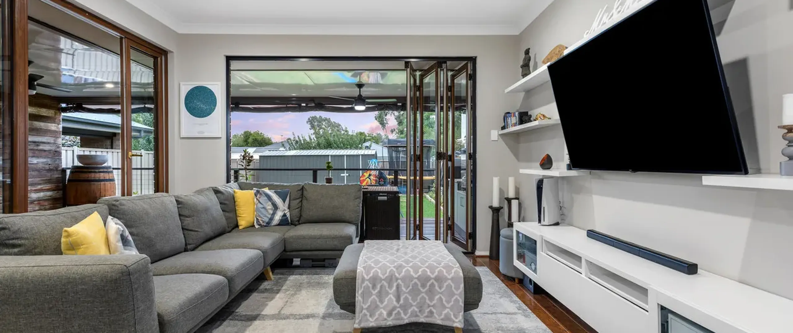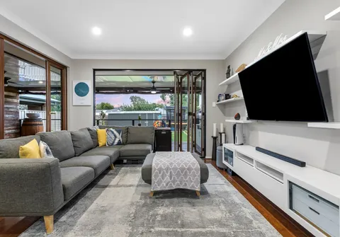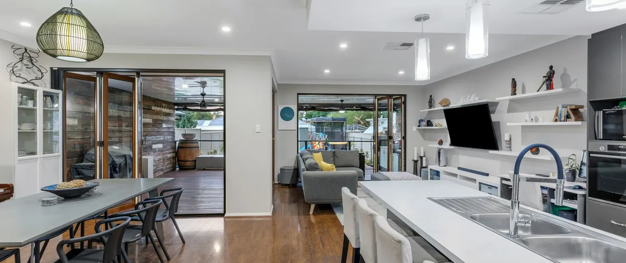 - Luxurious open plan living, dining and kitchen area with an abundance of natural light and split system reverse cycle air conditioning, featuring bi-fold doors that open onto the outdoor entertaining area