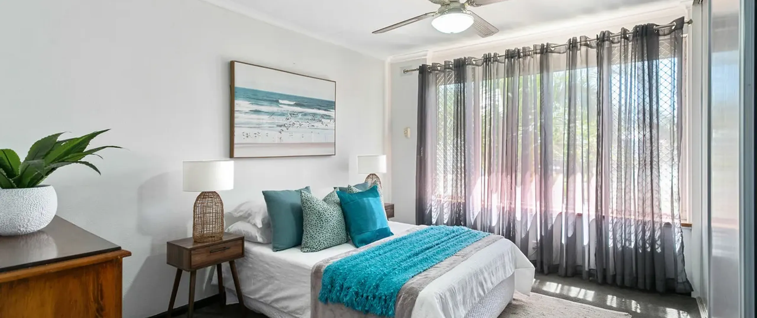 - 3 bedrooms, all with built-in robes and carpet; Master and bedroom 2 both with ceiling fans