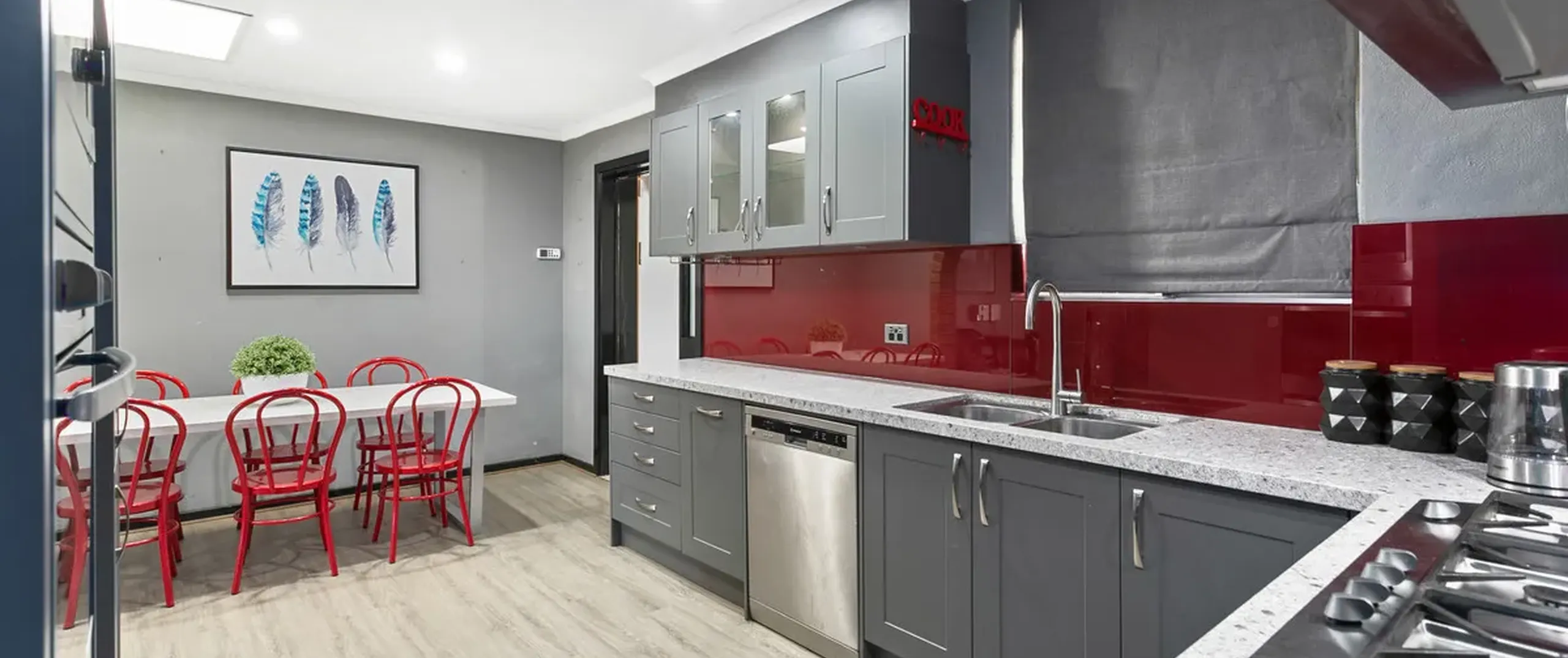 - Renovated kitchen with stunning 'Wall Span' Kitchen joinery and featuring stone benchtops, ample bench and cupboard space and stainless steel appliances including a 5 burner stovetop and built-in microwave